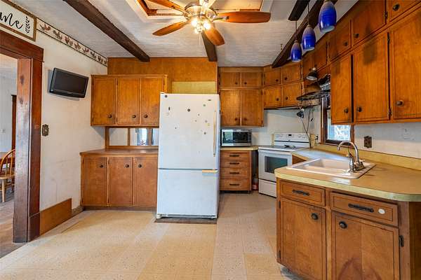 Discover the tranquility of country living with this charming 3 bedroom, 1 bathroom ranch home with original walnut trim, this home is situated on the front 32.59 acres. This property offers a serene escape from city life, featuring a pond and a large shop building perfect for variety of uses. Home is an "AS IS" Sale. .Home and land has been certified appraised 9/2024. Contact the Listing Agent for a private Showing! UPDATE: The north AG land has been sold 45.16 Acres, Dallas County survey has determine new plat and parcel for this MLS number 716185. The homestead, outbuilding and pond with 32.59 Acres is STILL AVAILABLE. Sold farm land is for the entire north parcel (40) plus 7 acres of the south parcel up to the pond as reflected on the county assessors. List Price has been updated!!