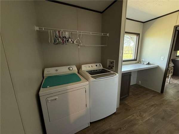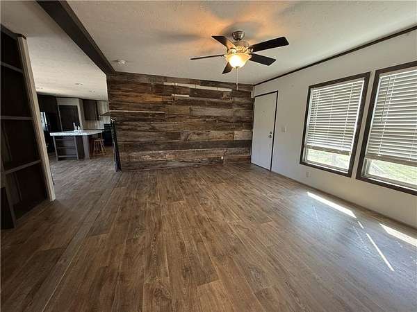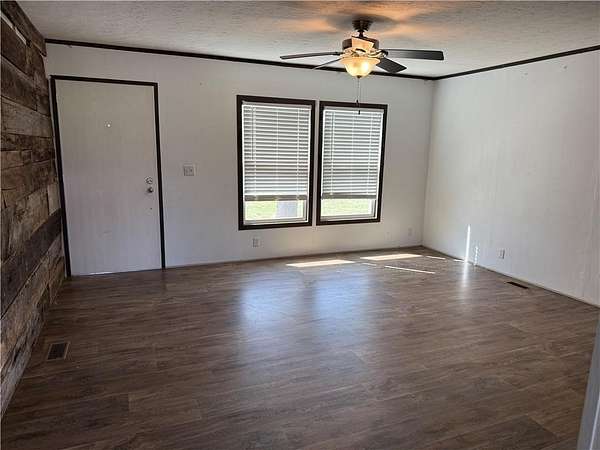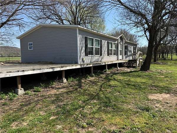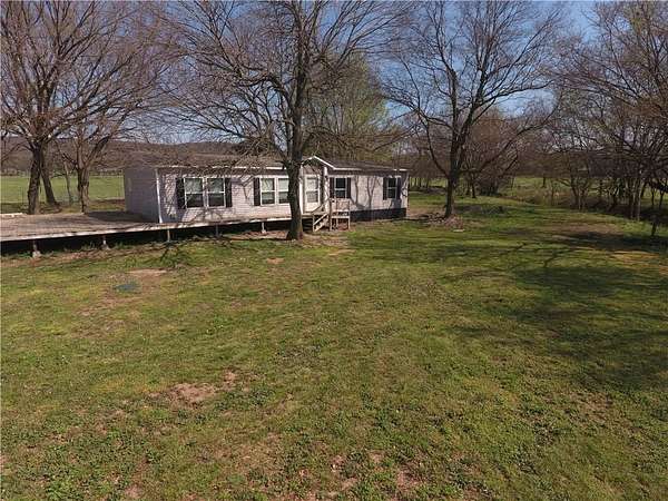 Located just 20 minutes west of the Wedington exit and 20 minutes south of Siloam Springs, this beautiful 5.8-acre property offers the perfect blend of country charm and convenience. The land is flat, open, fenced, and has paved road frontage—ideal for enjoying peaceful rural living with easy access to town. The 2022 mobile home features 1,512 sq ft with 3 bedrooms and 2 bathrooms, offering a warm and inviting layout. Inside, you’ll find LVP flooring, a spacious kitchen with island, furnished appliances, a walk-in pantry, cozy living room built-ins, and a private master suite with a walk-in closet. Step outside to the large deck and take in the quiet countryside, whether you’re sipping coffee in the morning or winding down at sunset.