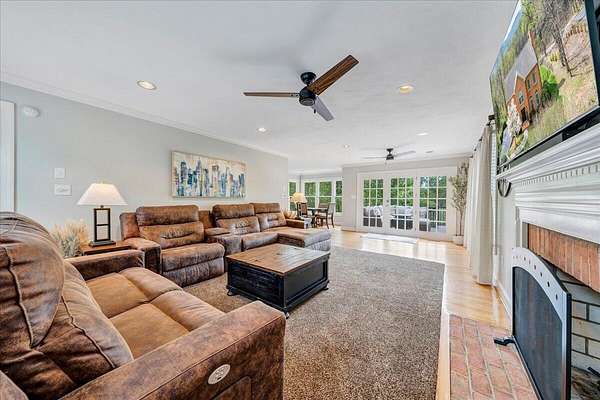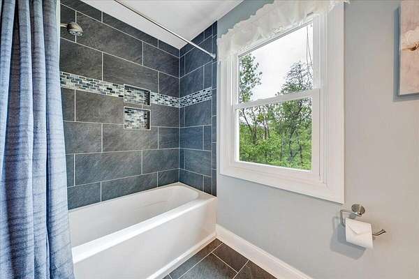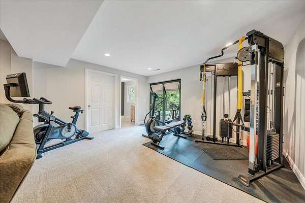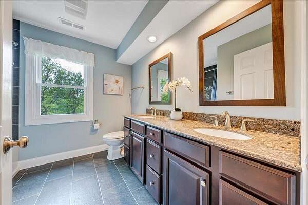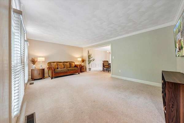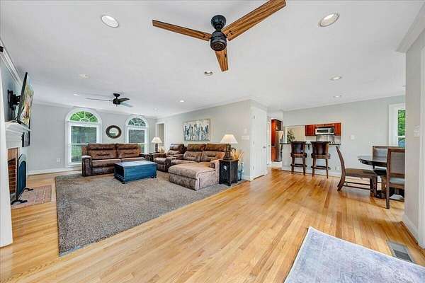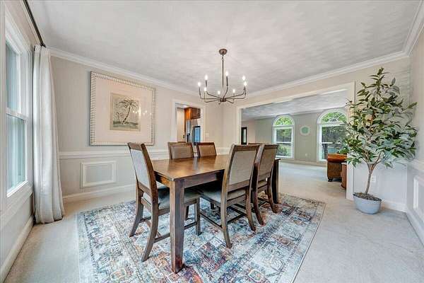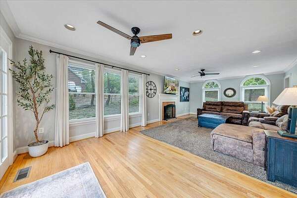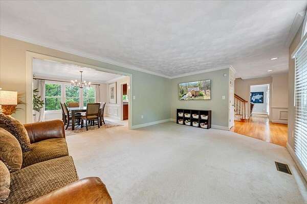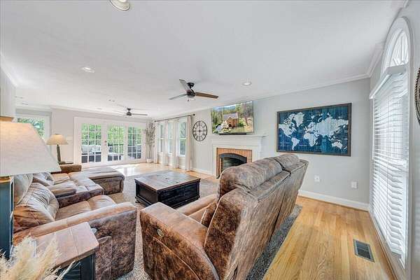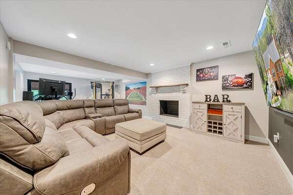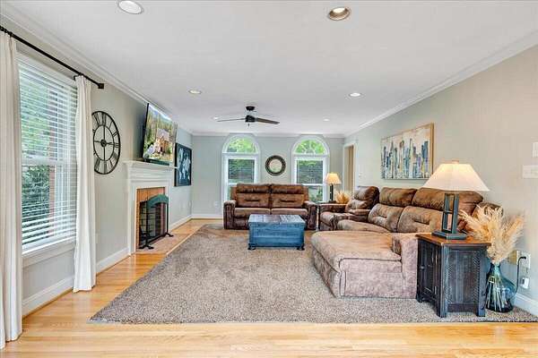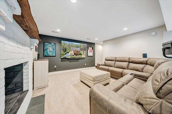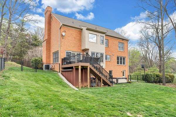 Welcome to this beautifully maintained 4-bedroom brick Colonial located in the highly desirable Strawberry Mountain subdivision. The entry level offers an eat-in kitchen with new appliances, a cozy living room with a masonry fireplace, and a formal dining room accented with crown molding throughout. Step outside to an expansive new Trex deck overlooking the fenced in yard and private 2+ acre lot--perfect for relaxing or entertaining. Upstairs, the spacious primary suite features an updated bathroom with dual vanities and a large walk-in closet. Three additional bedrooms and a second full bath complete the upper level. The recently finished lower level provides a versatile family room with 2nd masonry fireplace, an additional half bath (with plumbing in place for a future shower)