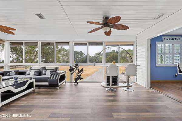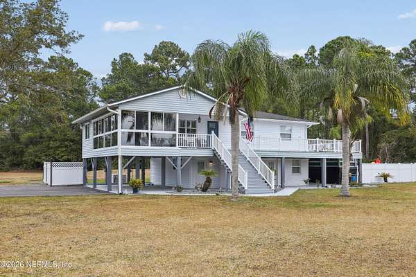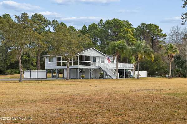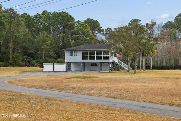 GREAT PRICE REDUCTIONFLORIDA ROOM, DECK, EXTERIOR FRESHLY REPAINTED **USE MIMORTGAGE & HELP YOUR BUYERS SAVE BIG. Tucked away on scenic Black Hammock Island, this beautiful 2 story home offers the perfect combination of comfort, privacy, and room to enjoy life to the fullest. Situated on 2.07 acres of lush, green landscape, this 3 bed, 3bath, home spans 2,068 sq ft and is ideal for those seeking tranquility without sacrificing convenience. Arrive in style through the gated entrance with remote access and follow the extended private driveway to your island oasis. The home's layout is as practical as it is welcoming, with multiple entrances on both levels, making daily life and emergency exits effortless. Inside, the kitchen is a chef's dream, featuring granite countertops, a functional kitchen island, breakfast bar, and both a cozy breakfast nook & an additional eat-in area. The inviting living space is complemented by ceiling fans, creating a comfortable & welcoming atmosphere. The primary suite boasts a spacious walk-in closet and a beautifully appointed shower with French doors. It also offers direct access to a meticulously maintained above-ground pool, perfect for relaxation and enjoying Florida's outdoor lifestyle. The Florida Room is enclosed with expansive glass panels, providing a breathtaking view of the home's entrance. This exceptional space serves as a peaceful retreat for gathering with family and friends, while offering uninterrupted views of the surrounding natural beauty. Ideal for entertaining, the home also features a downstairs wet bar, an open-concept floor plan, and a generous layout that accommodates both get-togethers and larger celebrations with ease. Step outside to enjoy the best of Florida living, relax by the above-ground pool, gather around the fire pit, or unwind on the balcony or patio. Whether you're hosting a backyard barbecue, playing soccer or volleyball in the expansive front yard, or even celebrating a wedding, this property is built for unforgettable moments. The house has a fenced yard, RV access, Pool deck updated recently by previous seller, attached carport, and two-story accessibility add extra functionality. Important updates include a Roof (2014), Water Heater (2013), HVAC (2021), septic system has been recently pumped and professionally inspected, ensuring optimal performance, a fully installed whole-home generator and a comprehensive water treatment system, ensuring comfort and reliability year-round. With no HOA or CDD fees, you'll enjoy complete freedom on your property while still having the option to connect with neighbors at the local community center, which offers sports courts, events, and more. Plus, you're just a short drive to schools, shops, restaurants, hospitals, and Jacksonville International Airport. MIMORTGAGE Flyer is in document tab.