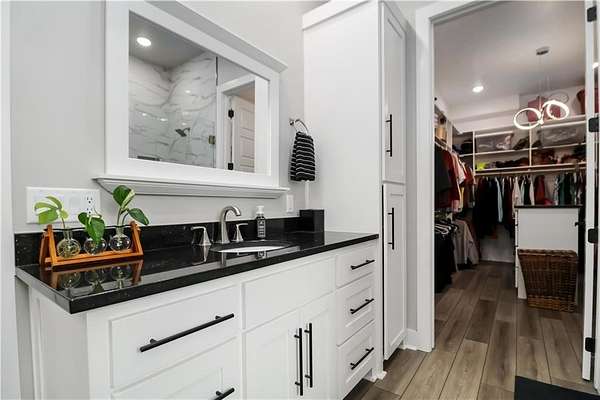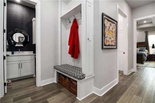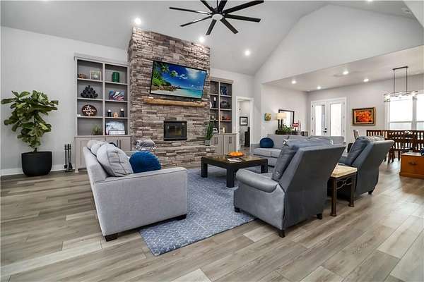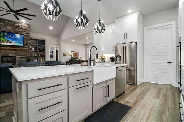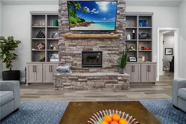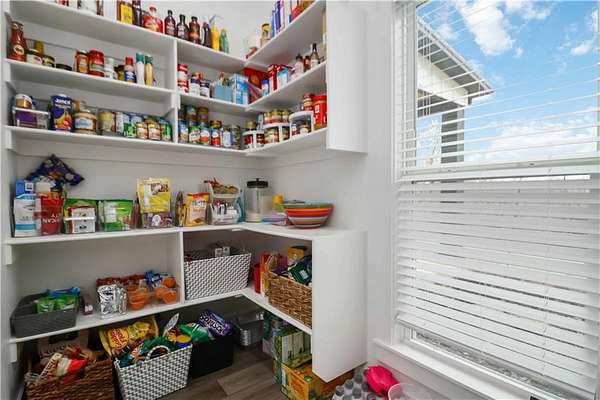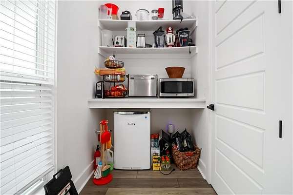 - Attic Storage, Blinds, Built-Ins, Ceiling Fans, Eat-in-Kitchen, Energy Star Appliances, Pantry, Quartz Counters, Smoke Detector, Split Floor Plan, Walk-In Closets, Wired For Sound, Woodstove