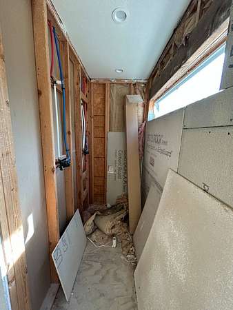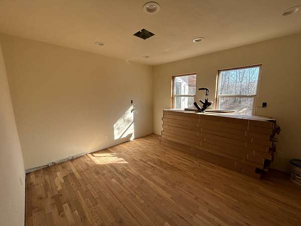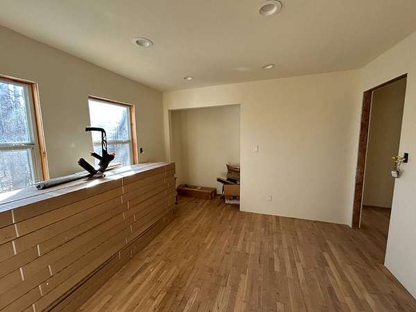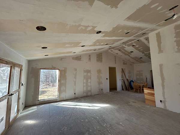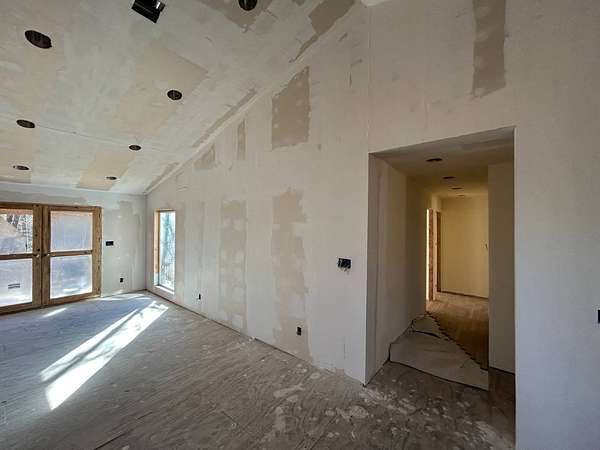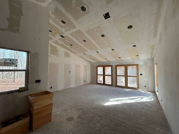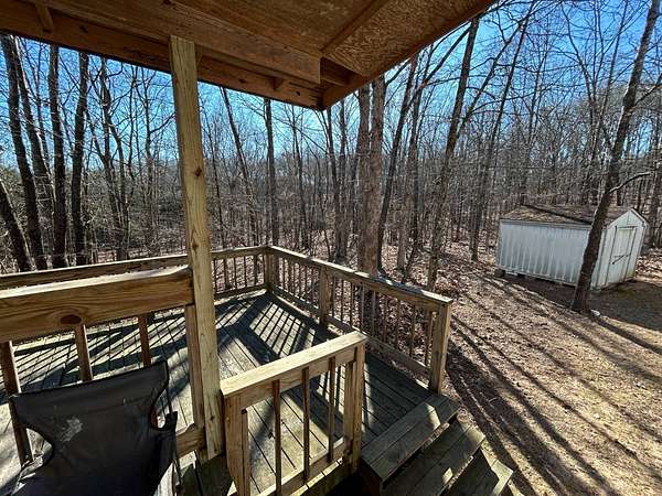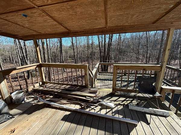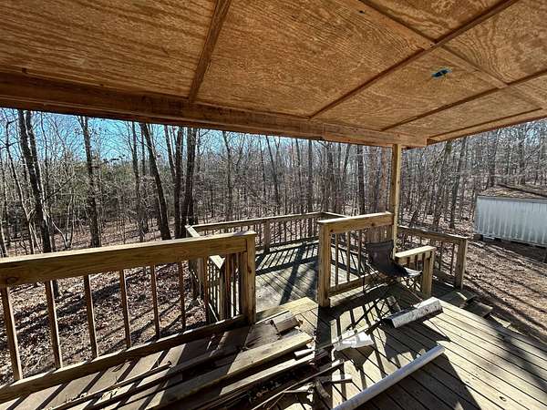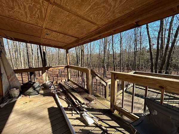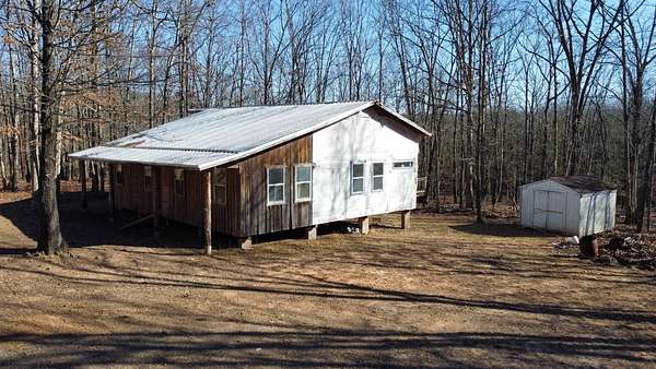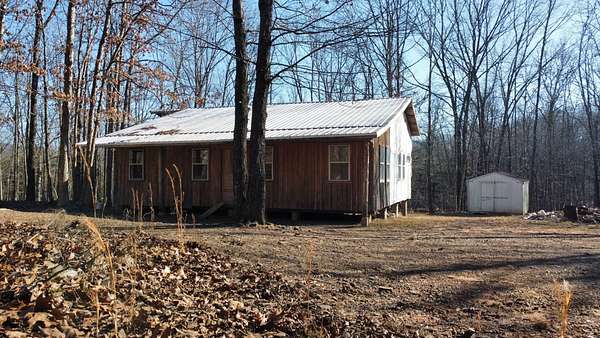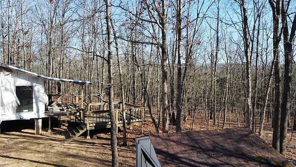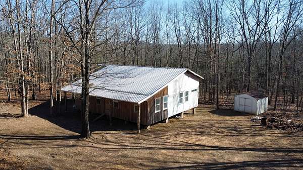 Here's an excellent opportunity to finish out a 1,424 sq. ft. home exactly to your taste. The home is approximately 70% complete and fully in the dry, offering unfinished oak hardwood floors with remaining flooring on site and still boxed, along with included cabinet doors and drawers to complete the interior. The home is all-electric, with the heat and air unit already on site. Water tap is in place with the line run to the exterior of the home, an electric pole is set at the property with the meter loop on site, and fiber internet is available. Located just 10 minutes from Ozark off Highway 219, with only a half-mile of county-maintained gravel road to the driveway, this property offers both the convenience of easy access and privacy. The land features a large, level, fenced and gated area at the top-ideal for parking trailers, ATVs, or weekend toys-and abundant wildlife including deer, turkey, and bear. Enjoy the outdoors from the spacious two-level back deck, partially covered and perfect for morning coffee or evening relaxation. The 2-bedroom, 2-bath layout includes a large living room highlighted by two sets of double doors opening to the deck. Situated on approximately 5 acres (+/-), this property provides a generous buffer and a rare chance to customize a home in a peaceful setting.