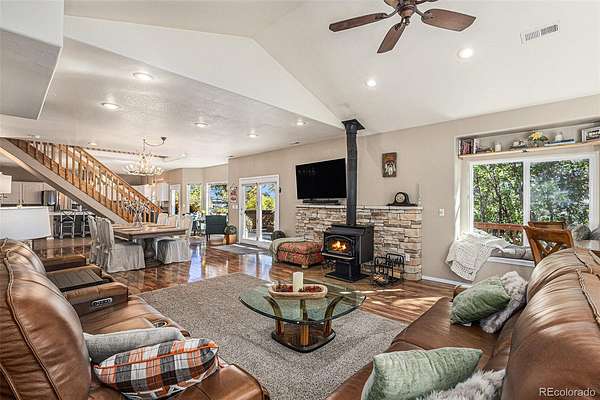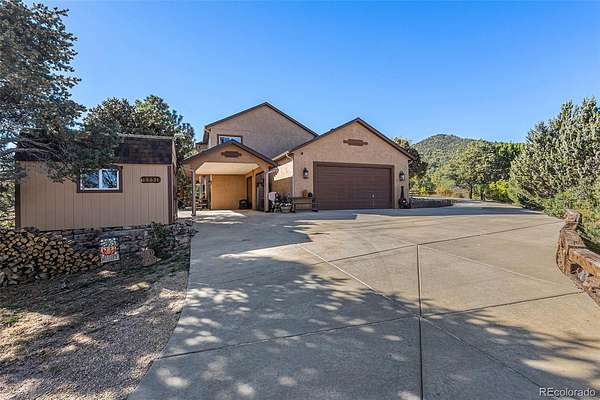 Don't miss the video tour! Private 3 bed, 3 bath home on 5 acres in the Pinons of Turkey Canon Ranch! The sunny, open-concept main level boasts magnificent views of the lush surroundings and abundant wildlife from every window. You’ll be the favorite host when entertaining in the amazing newly remodeled Chef’s kitchen with the oversized island with pot filler, stylish two-toned kitchen cabinets, under mount cabinet lighting, walk-in pantry, and newer refrigerator, microwave and double oven with many smart features. The dining area seats the large dinner parties, and the living room features a vaulted ceiling and cozy wood-burning fireplace. Rounding out the main floor is a spacious guest bedroom and a full bathroom. Upstairs is a fully renovated primary en-suite with private balcony overlooking acreage with mountain views. The primary en-suite bathroom is a showstopper with double vanity, soaker tub, separate shower, electric fireplace, and walk-in closet with custom racks. There is new flooring and paint throughout the second level, huge upstairs laundry with sink and storage, seating nook, and a sizable rare second en-suite bedroom. A circular driveway leads you to a grand entrance with a newly rebuilt deck along with the new en-suite balcony that both have Trex. New roof and radon system in 2023. There’s a two car attached garage, carport, shed, new 10 x 13 Greenhouse and large separate parking area for all your toys and vehicles! An ILC and list of upgrades available as too many to mention. This property lives large and features numerous luxurious upgrades throughout, including a new hot tub in 2024! You will instantly feel right at home in this coveted private setting and enjoy the benefits of this turn-key and well maintained property! Take your ATV directly from your property to the hundreds of acres of BLM trails. BLM trails also have access to hike to Monkey Falls with stunning waterfalls and trout fishing! Welcome to your forever home!
