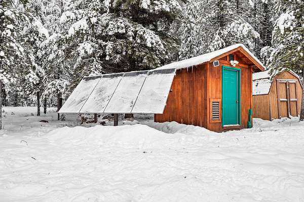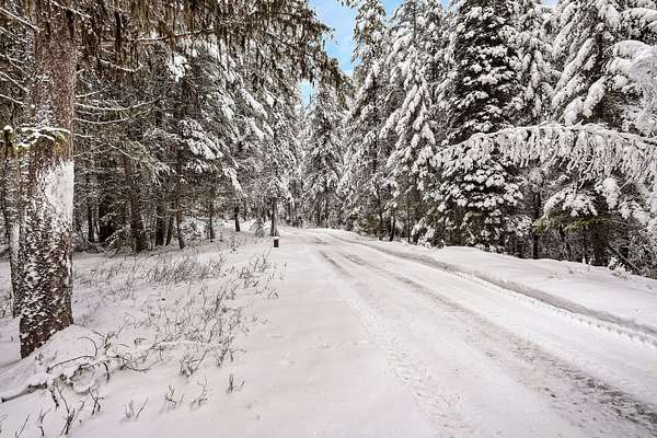 From the intersection to the Polebridge Mercantile go north on the North Fork Road about 16 miles. (About 1 mile north of the intersection with Trail Creek Road). See sign and address number on mailbox on the right (E). Turn right (E), at Y in the driveway go right to the home.