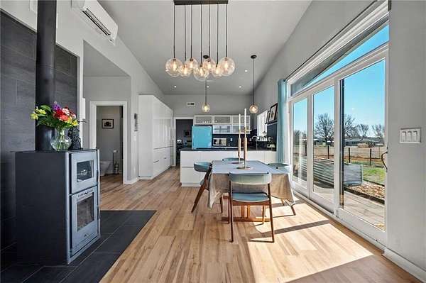 Enjoy self-sufficiency, low energy costs, family-friendly spaces & equestrian & livestock facilities. 17 ac nestled in the beautiful Vinland Valley area. Narrow Trail Farm is perfect for those looking for space yet still close to all the amenities of the city. This 2016 farm has impressive passive solar design & self-sustaining infrastructure w all the amenities of a modern farm. Diverse orchard of producing apple, pear, peach, plum & nectarine trees & blackberries, raspberries, & blueberries. Thousands of flower bulbs & peonies are planted stunning flowers throughout the growing season. Seller owned Solar panels help to power the farm and provide low energy costs. The contemporary home is thoughtfully designed w soaring ceilings & design that utilizes every inch. The 1297 sq ft home provides 3 bed & 2 bath. Walk into the open kitchen-dining-family room w huge windows & sliding doors opening out to the wrap around patio. Everyone will enjoy the wood burning stove in the great room. The primary suite offers a walk-in closet, that is also a safe room, and ensuite bath. Enjoy the outdoor space including the huge covered patio perfect for enjoying evening meals. There is a large storm shelter just off the patio for that additional safety during storms. Outbuilding #1 (48x24) detached garage w 3rd bay converted to the perfect family room. Outbuilding #2 (48x24) horse barn w 3 stalls opening out to the dry lot paddocks. Outbuildings #3 (36x24) equipment and hay storage. There is a large pasture as well as additional open pasture for hay or can be fenced for your horses or livestock. And everyone will enjoy the 75x165 professionally built fenced outdoor arena. Need more space? Check out the adjacent 12 acres with beautiful pond that is also available (MLS#2555700) Want to have family or friends as neighbors? Check out the charming 3 bedroom, 2 bathroom home on the adjacent 5 acres (MLS#9606640)