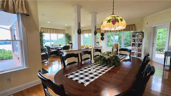 - Bookcases, Cathedral Ceiling(s), Chandelier, Crown Molding, Double Vanity, Eat-In Kitchen, Entrance Foyer, High Ceilings, High Speed Internet, Kitchen Island, Open Floorplan, Pantry, Primary Downstairs, Recessed Lighting, Storage, Vaulted Ceiling(s)
