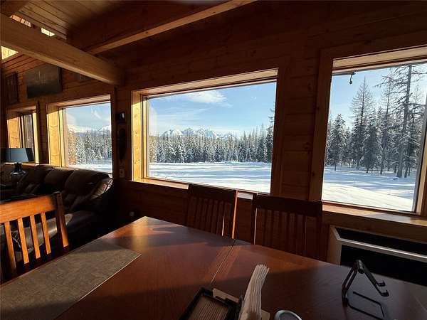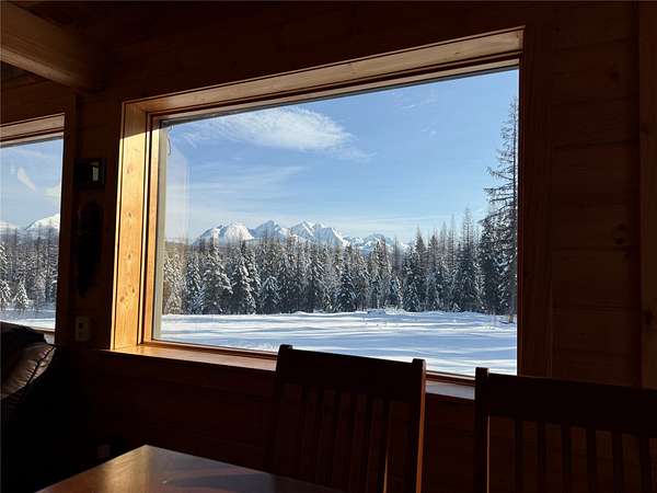 Quintessential log home with spectacular Rocky Mountain views of Glacier National Park, set in a stunning open meadow, surrounded by parked-out forest & mature trees. This private 22-acre property borders Forest Service land & sits at the end of the road for seclusion. The 2-bedroom, 2-bath, 1,379 SF craftsman-style home features an open layout with soaring vaulted ceilings, extensive pine wood finishes & wood floors throughout. Large windows capture amazing views from every angle. Enjoy the outdoors from the covered porch & deck. The home is off-grid with a new, extensive solar power system & backup generator. An oversized detached 24'x30' insulated garage has covered side parking, additional storage & a separate woodshed. Located about 4 miles from two river access points & close to the Canadian border. An adjacent 20-acres with a home is also available (MLS #30063405) for expanded opportunities. Incredible recreation awaits in the wild wilderness beauty of the North Fork Valley.