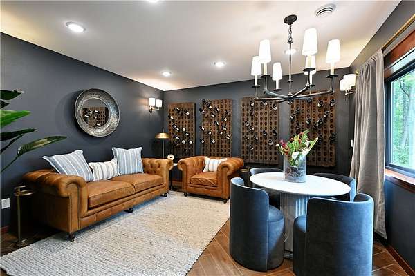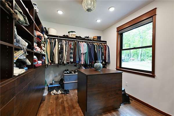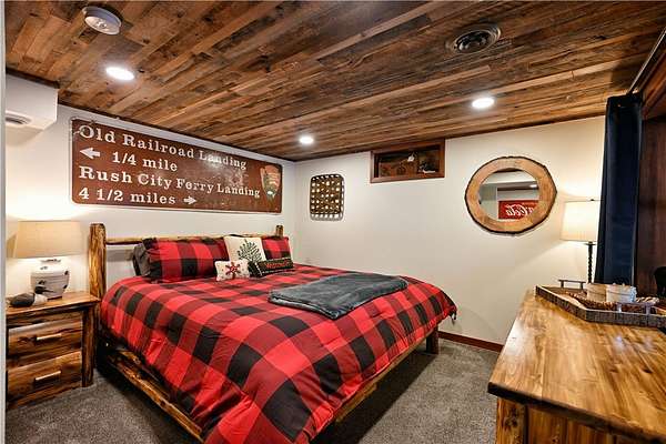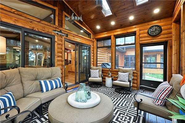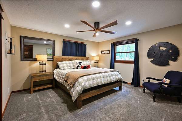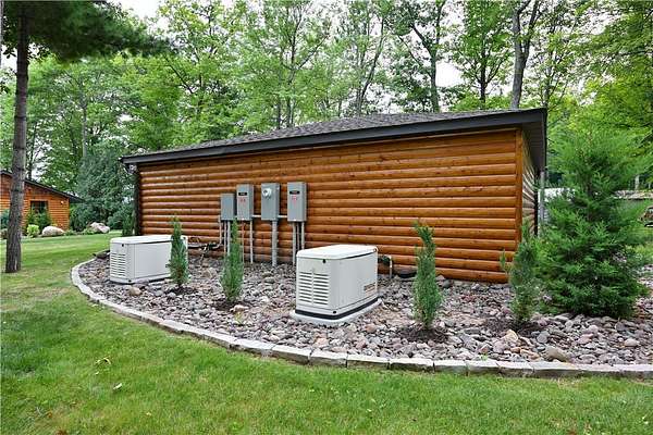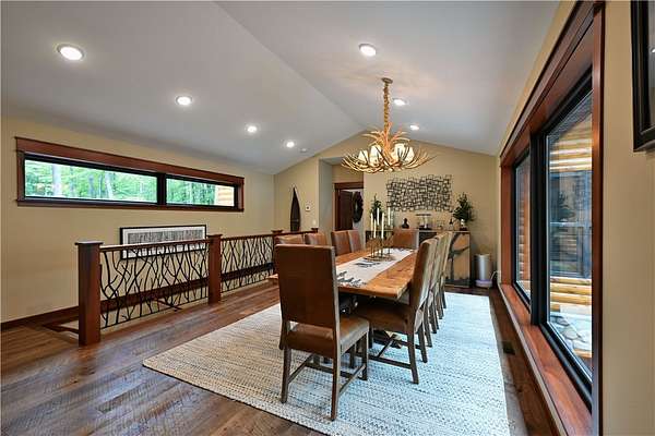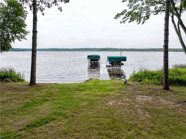 Exquisite lakefront estate on Victory Heights boasting 240' of pristine, flat sandy shoreline with breathtaking views. Professionally landscaped with $150K in enhancements, this 5,816 sq ft residence offers unparalleled luxury and comfort. The master suite is a private sanctuary featuring its own HVAC system, fireplace, office, sitting area, expansive walk-in closet, a 6' x 7' shower with lake views, and a striking concrete soaking tub. Interiors showcase custom hardwood floors, granite countertops, designer lighting, and a chef-inspired kitchen with premium Thermador appliances. Three sets of washer and dryers add ultimate convenience. Heated basement floors lead to an elegant bar and wine room. Additional highlights include two fireplaces, dual generators, new septic, EV-ready garage, high-speed fiber internet, hot tub, and multiple outdoor fire pits. Also features grandfathered in paved driveway down to lake, with lake front storage & fish shed. Room to add pole barn on property.