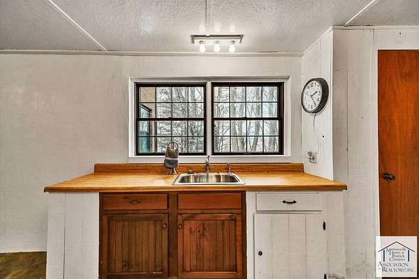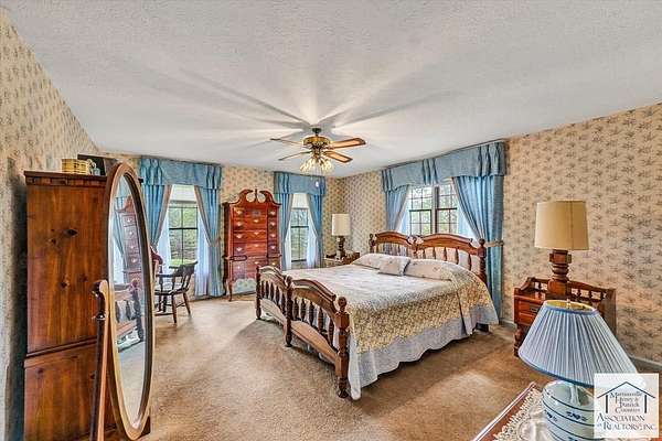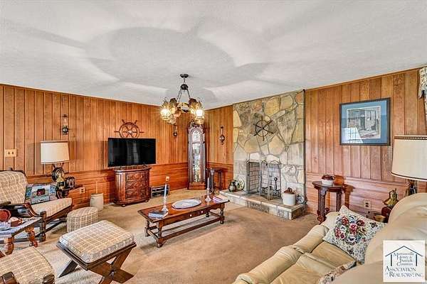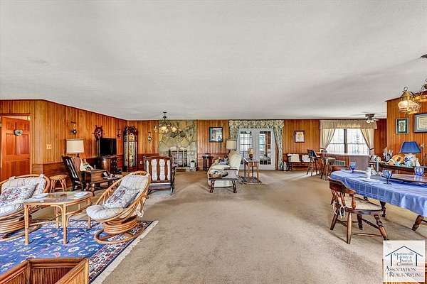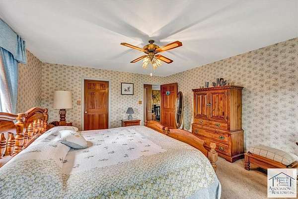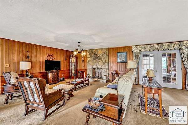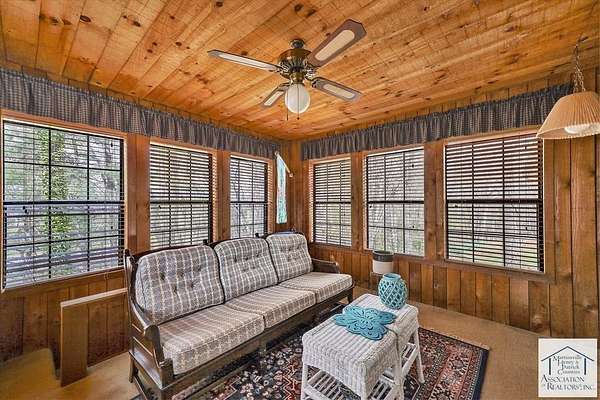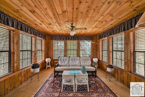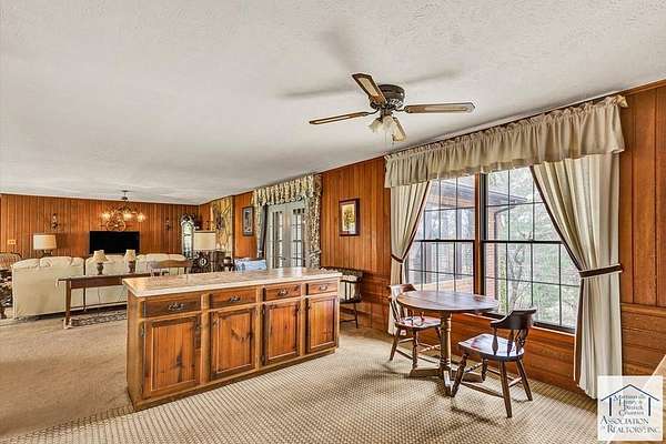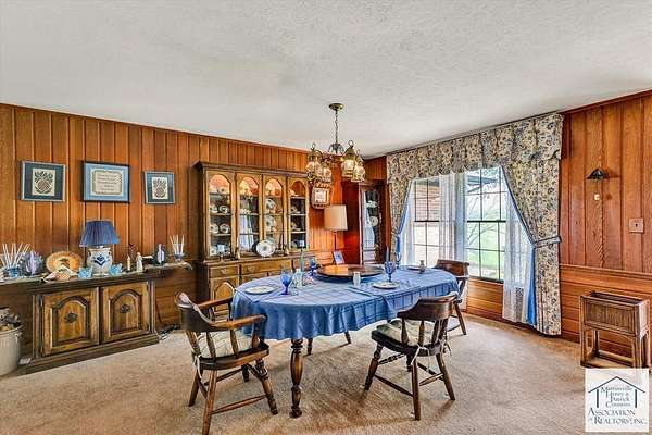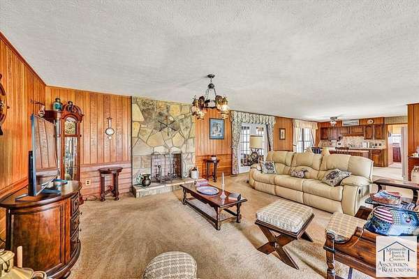 Gently rolling fields lead to this distinctive residence, privately situated among mature Bradford pear trees at 1565 Hatchers Chapel Road in Claudville. The two-bedroom, two-bath home features a spacious 28' x 29' great room designed for dining and entertaining, highlighted by a fireplace and rich cherry paneling. The open kitchen is appointed with leathered granite countertops, an island, updated appliances, and convenient access to the garage and upstairs laundry. A 13' x 13' sun porch extends from the great room, providing additional living space. The primary suite includes a large bath with dual vanities, separate toilets, and a shower, along with a generous walk-through closet leading to a bright flex room suitable for a sitting area or workspace. An oversized two-car garage offers ample storage and opens to a patio ideal for outdoor entertaining. The laundry area includes extensive cabinetry, a soaking sink, and granite countertops. The basement provides a large open area with a fireplace and potential for a kitchen space, along with a bedroom, full bath, sunroom, workroom, extra laundry facilities, and storage. A separate exterior entrance enhances the suitability for an in-law or guest apartment. The property's gently rolling acreage includes an outbuilding with a garage door, a fenced garden area, and a large tractor shed/workshop with electricity, all accessed by a quarter-mile paved driveway. A pond on the property needs to be reclaimed. No drive-bys, please!