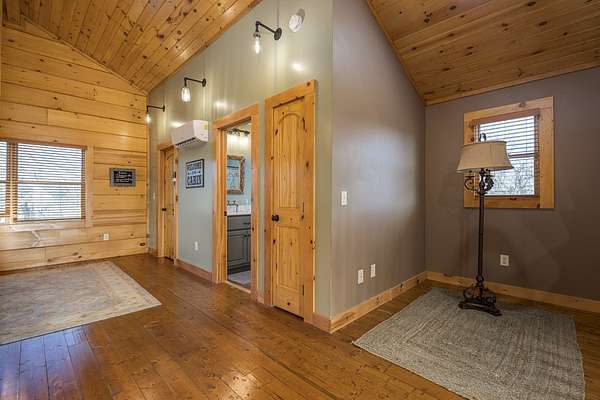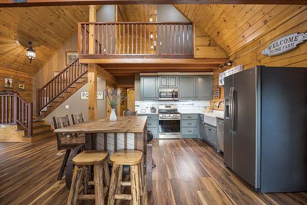 Inside, the cabin features custom cabinetry and comes fully furnished, creating a true turnkey setup for personal use or continued short-term rental income. The walkout basement adds functional living space, and the layout works well for a full-time residence, family getaway, or hunting lodge.