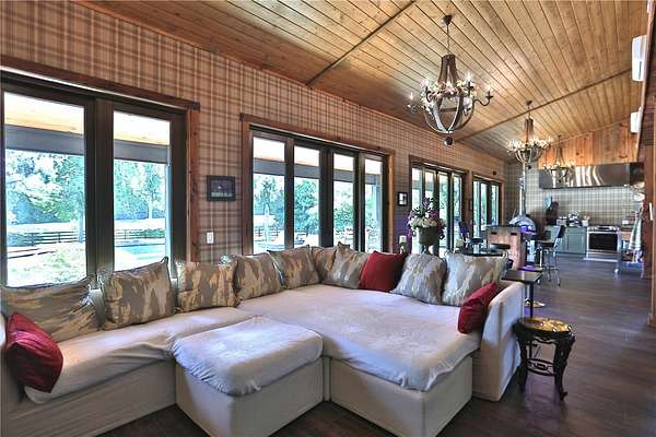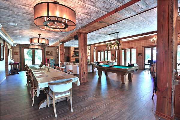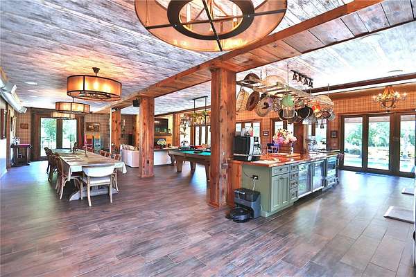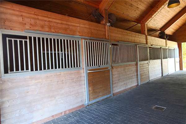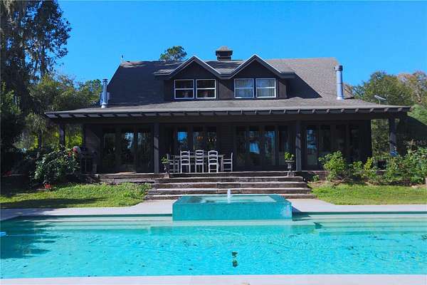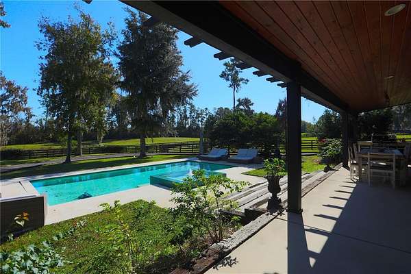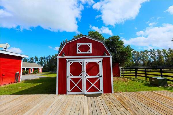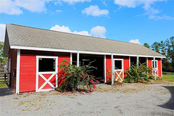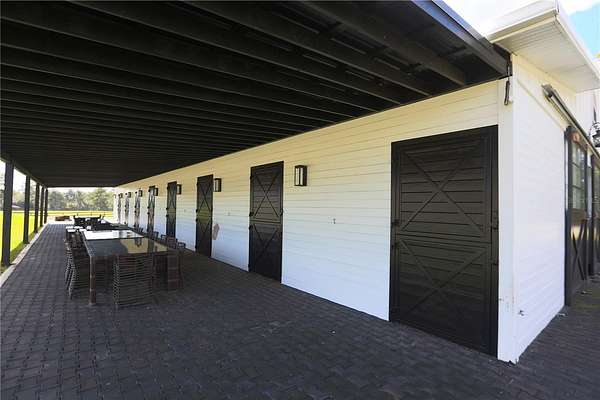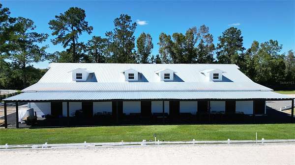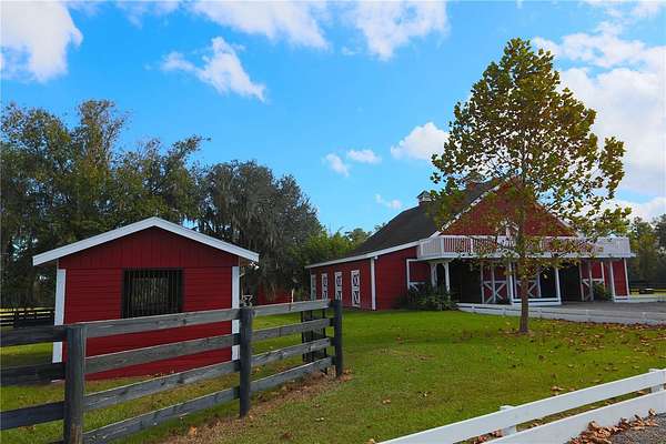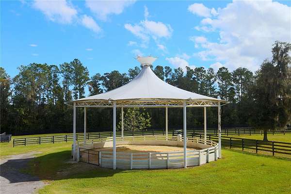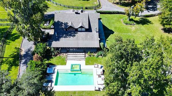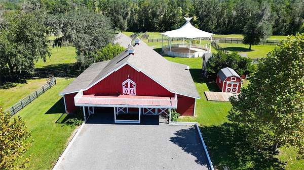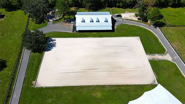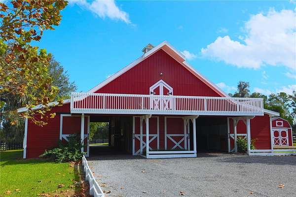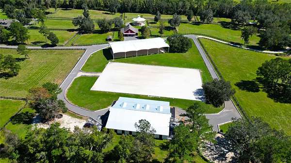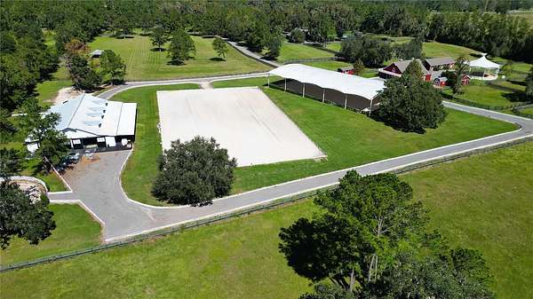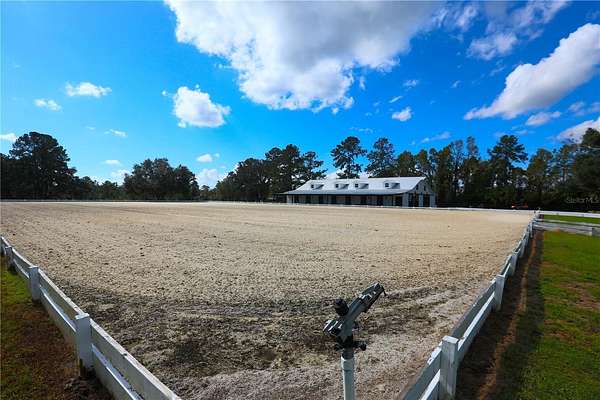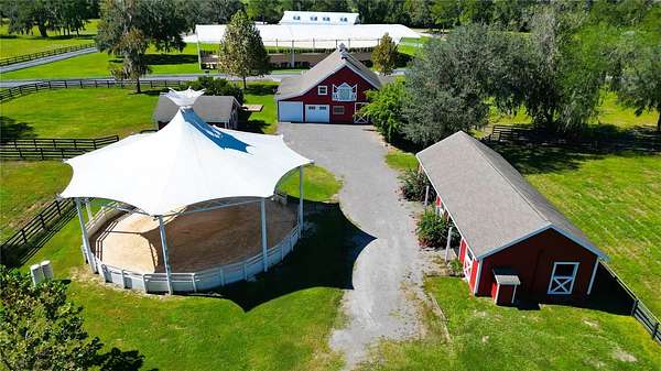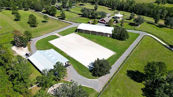 Under contract-accepting backup offers. State-of-the-art 54-acre equestrian facility - Great Location - 20 Miles from the World Equestrian Center with incredible amenities. This property has it all: Luxurious yet rustic main residence overlooking the beautiful in-ground pool, spa, and tennis court. The enchanting primary residence is an entertainer's dream with 4,600+ SF of living area, 5 bedrooms, 5 1/2 baths, and has everything you need! Enter the 2-story residence with luxurious and intricate woodwork throughout and discover spacious living! The stunning chef's kitchen features: commercial range, venta-hood, two dishwashers, plenty of cabinet space, plus a large center island for seating family or guests all is open to the dining and living areas. The dining area easily accommodates a table for 12 or more guests and offers great pool views. The family area features a real wood-burning fireplace. There are 3 spacious guest bedrooms and 3.5 baths on the main floor. All the space on this side of the home looks out with many doors and windows overlooking the back lanai and the lush, green, and serene backyard. Tons of natural light abounds throughout! On the second floor, the expansive primary suite is a private retreat featuring a fireplace that provides a cozy ambiance, another ensuite bedroom, den, and bonus room. The private pool area is perfect for relaxing and enjoyment of poolside fun. Additional improvements include: Two private 1/1 guest quarters, a detached 4-car garage, A show stable featuring 17 oversized stalls, a large overhang entertaining/viewing area, on one side overlooking the outdoor arena, 2 baths, wash stalls, plus an upstairs entertaining lounge and viewing area with a full kitchen. Outdoor round pen. The second barn has 6 stalls, a large tack and feed room, a bath, an apartment upstairs, a storage room, and an employee lounge area. Plus separate office. The third barn offers 5 show stalls with rubber paver aisles, a separate 2-foaling stall barn, and a covered round pen. An oversized covered arena with professional footing, irrigation, and light for night riding. The outdoor arena measures 130' X 230'. Perfect for dressage or jumping.