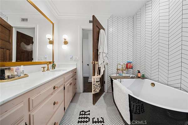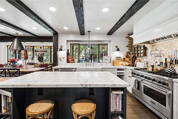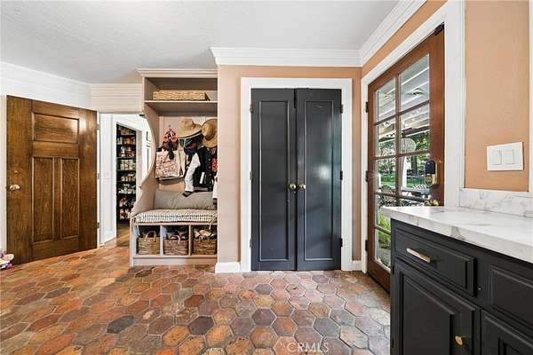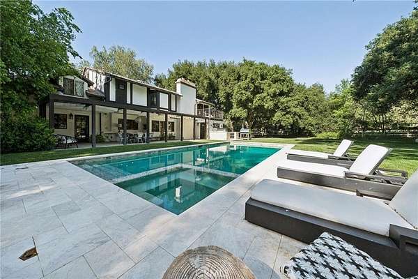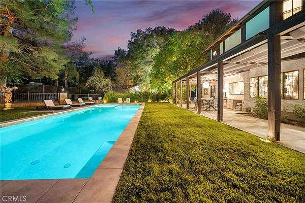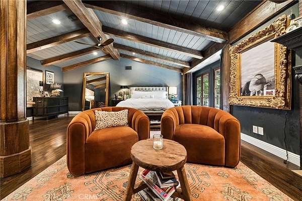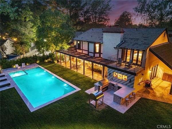 There are only a handful of custom homes in the prestigious Sand Canyon community that truly capture both architectural significance & modern refinement — and 15656 Iron Canyon is one of them. Set on over two usable acres, this exceptional property seamlessly blends the timeless character of coveted Cloyd architecture with extensive high-end updates by its current owners. From the newly installed pool to the fully remodeled kitchen & baths, every improvement enhances both style & functionality while honoring the home’s original charm. The result is a rare offering rich in history & perfectly suited for today’s lifestyle. The grounds are spectacular — manicured, park-like, & surrounded by rolling hills, mature trees, & unmatched privacy rarely found in tract homes. Set well back from the street with three separate gated entrances, the property offers abundant space for vehicles, boats, RVs, & more. Designed for entertaining & relaxation, the outdoor spaces feature multiple conversation areas, a built-in cook station, firepit lounge, covered & open patios, a pizza oven, a warm/cold plunge, & a lighted sport court. A Generac generator adds convenience & peace of mind, providing power to the entire property if needed. Inside, old-world charm meets modern comfort. Rich wood flooring, exposed beam ceilings, multiple fireplaces, a whole house LifeSource water filtration system, & a built-in bar create a warm & inviting atmosphere. Unique historical elements — including terra cotta tile from France in the mudroom, a staircase & front door from the Edward Horton estate in Hollywood, & original stained glass from Jeanette Cloyd — add distinctive character. The redesigned kitchen features Calacatta countertops, high-end stainless steel appliances, & a walk-in pantry. All four-and-a-half bathrooms have been updated, & the primary suite offers a private deck overlooking the pool with separate his & hers bathrooms & spacious walk-in closets. Additional upgrades include a newer roof & updated electrical. If you appreciate craftsmanship, history, & architectural detail — where plaster walls replace drywall & every space tells a story — this home is truly special. If you’re seeking over two flat acres with no HOA in one of Sand Canyon’s most desirable settings, this is an opportunity not to be missed.