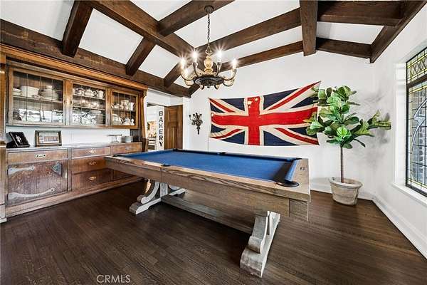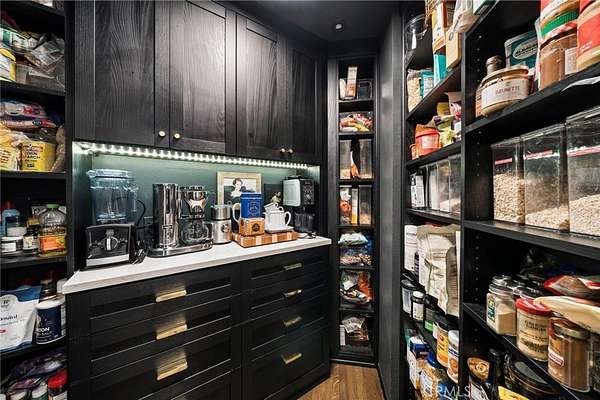 - Balcony, Bar, Beamed Ceilings, Built-In Features, Ceiling Fan(s), Crown Molding, Pantry, Recessed Lighting, Storage, Wainscoting