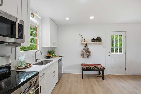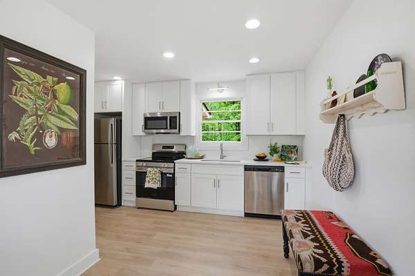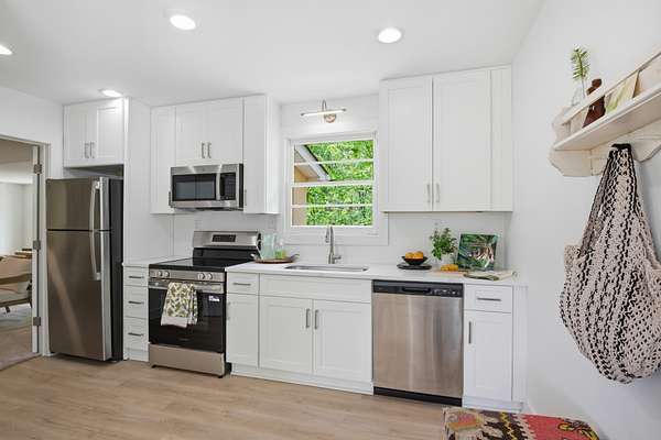 The cottage itself has been thoughtfully renewed with a new roof, kitchen, bath, water heater, flooring, drywall, and insulation—creating a comfortable, turnkey residence with all appliances included.