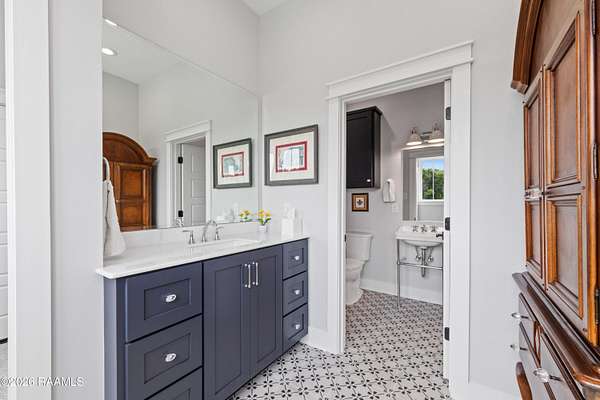 You can map out your dreams on a napkin and hope one day they come to life, or you can walk the grounds of this perfectly planned estate and see that someone has already brought those dreams to reality. Welcome home to this private 10-acre property designed with intention -- a custom-built 3 bed/3 bath + office + bonus room farmhouse, a one-acre pond stocked with catfish, bream, and bass, a workshop with a 600+ sq ft apartment, garden shed, and ample storage and hobby space. As you drive through the front gate, the home sits tucked behind mature trees for added privacy. Approaching the home, an inviting front porch welcomes you inside this custom residence built by Brian Guidry and designed with the help of April Guillory. The first level features an open-concept kitchen and living area with dining room/office, the primary suite, a secondary bedroom and bath, and laundry space. Upstairs offers an additional bedroom, bathroom, and a large bonus room, part of which is currently used as an office. The living room showcases a centered fireplace with views of the backyard and pond. The kitchen includes a gas range, eat-in island, wall oven, custom cabinetry, and a stunning brick arch separating the kitchen and living space. The primary suite is filled with natural light and features dual sinks, generous storage, and a walk-in closet. Step outside to a master gardener's paradise with a covered patio leading to an extended brick patio with sun shades and firepit. Walk the pond and experience the thoughtful design throughout the property. Additional features include an appliance garage with water line, filtration and softener systems, four walk-in attic spaces, plantation shutters, gutters with leaf guards, a 300-gallon buried propane tank, and water throughout the property. The detached guest apartment includes a bedroom, bathroom, full kitchen, and laundry, while the workshop offers a half bath. This one truly must be seen to be believed!