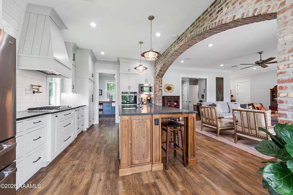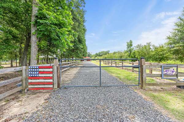 You can map out your dreams on a napkin and hope one day they come to life, or you can walk the grounds of this perfectly planned estate and see that someone has already brought those dreams to reality. Welcome home to this private 15-acre property designed with intention - a custom-built 3 bed/3 bath + office + bonus room farmhouse, a one-acre pond stocked with catfish, bream, and bass, a workshop with a 600+ sq ft apartment, garden shed, and ample storage and hobby space. As you drive through the front gate, the home sits tucked behind mature trees for added privacy. Approaching the home, an inviting front porch welcomes you inside this custom residence built by Brian Guidry and designed with the help of April Guillory. The first level features an open-concept kitchen and living area with dining room/office, the primary suite, a secondary bedroom and bath, and laundry space. Upstairs offers an additional bedroom, bathroom, and a large bonus room, part of which is currently used as an office. The living room showcases a centered fireplace with views of the backyard and pond. The kitchen includes a gas range, eat-in island, wall oven, custom cabinetry, and a stunning brick arch separating the kitchen and living space. The primary suite is filled with natural light and features dual sinks, generous storage, and a walk-in closet. Step outside to a master gardener's paradise with a covered patio leading to an extended brick patio with sun shades and firepit. Walk the pond and experience the thoughtful design throughout the property. Additional features include an appliance garage with water line, filtration and softener systems, four walk-in attic spaces, plantation shutters, gutters with leaf guards, a 300-gallon buried propane tank, and water throughout the property. The detached guest apartment includes a bedroom, bathroom, full kitchen, and laundry, while the workshop offers a half bath. This one truly must be seen to be believed!