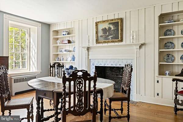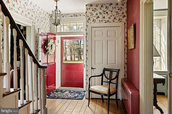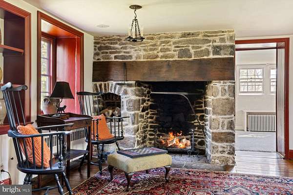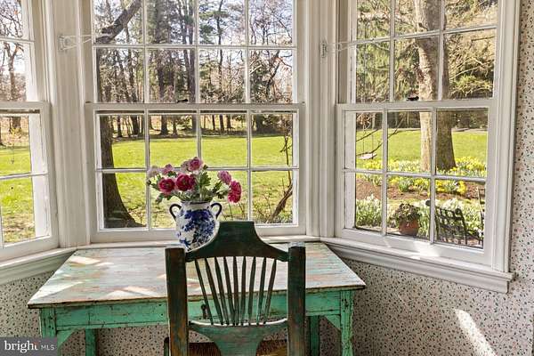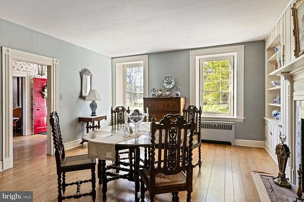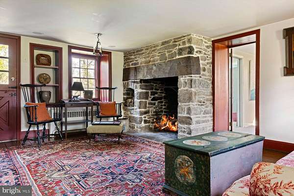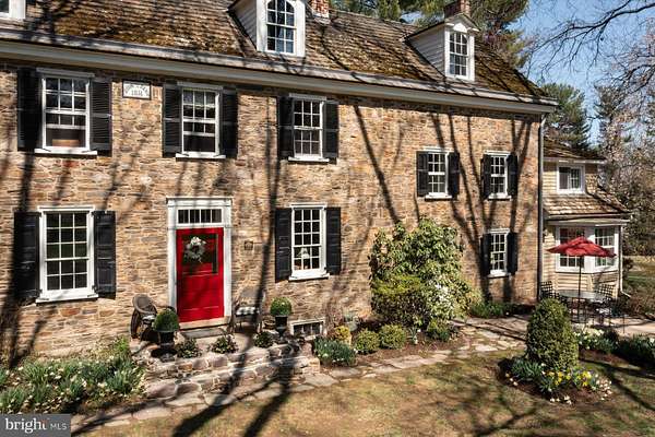 Set gracefully back from the road on nearly two acres of lush grounds is this exceptional Bucks County Stone Manor home, known as Te Deum. Located between New Hope and Newtown, PA the picturesque retreat offers a rare blend of timeless beauty, thoughtful restoration, and versatile living space. Originally constructed in 1769 and significantly enlarged in 1831, the home has been lovingly restored by its current owners, preserving original details while introducing modern comfort and thoughtful design. Nestled in a peaceful, park-like setting with mature trees, vibrant gardens, and views of a neighboring pond, the long private drive welcomes you beneath one of the oldest trees in Pennsylvania, setting the tone for this extraordinary offering. Inside, the sunny home features antique pumpkin pine floors, deep window wells, and custom millwork throughout its three spacious stories. The gracious family room centers around a stunning walk-in stone fireplace and opens to both front and rear gardens, perfect for everyday living or entertaining. Four working fireplaces, each chimney professionally relined, add warmth and historic charm to the space. The main level includes living room, family room, an elegant dining room with Delft tile fireplace surround and custom cabinetry, a modest kitchen with built-in seating and cherry wood cabinetry, and a comfortable guest room with bath/laundry. Upstairs, the versatile layout includes a primary suite with fireplace and garden views, a custom designed home office with cherry cabinetry, additional bedrooms with flexible adjoining spaces, and beautifully tiled hall baths. The third floor boasts additional bedrooms or creative bonus areas ideal for creative endeavors or fitness. Each room is filled with natural light and historic detail. Zoned R2, the property allows for a multitude of uses including a professional office, boutique inn, ... Ideally situated near I-295 and the Delaware River, this home offers quick access to Princeton (25 minutes), Philadelphia (30 minutes), and New York City (80 minutes), with the Yardley Train Station just five minutes away. Don't miss your opportunity to own a truly remarkable piece of Bucks County history, where grace, privacy, and possibility come together.
