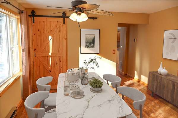 Charming Cabin Getaway on 2 Wooded Acres! Escape to this spacious and beautifully maintained home nestled on a serene 2-acre wooded lot. Featuring warm knotty pine walls and six-panel oak interior doors, this property offers the perfect blend of rustic charm and modern comfort. Enjoy cozy evenings by the living room fireplace or entertain in the updated kitchen with a center island. The huge primary suite includes a private bathroom for added convenience. Main floor laundry adds everyday ease. Currently move-in ready, this property has previously been used as a successful Airbnb-offering an excellent investment opportunity or ideal second home. Located close to scenic trails, lakes, and local amenities, this cabin retreat is the ultimate getaway for nature lovers and investors alike! To help visualize this home's floor plan and to highlight its potential, virtual furnishings may have been added to photos found in this listing.