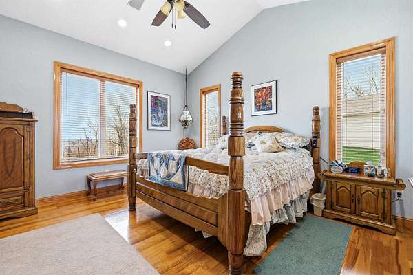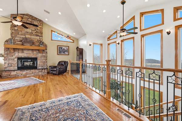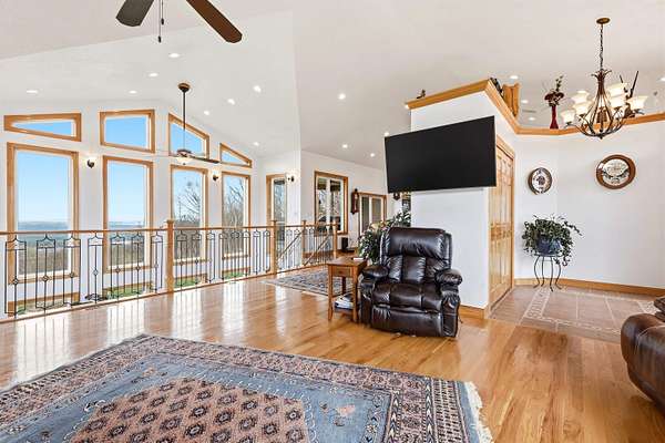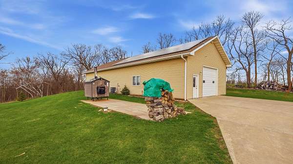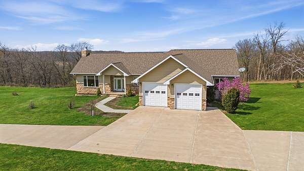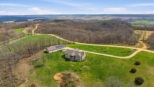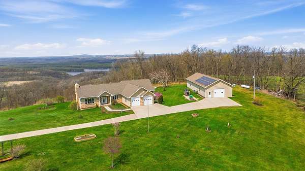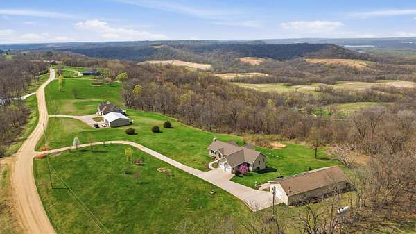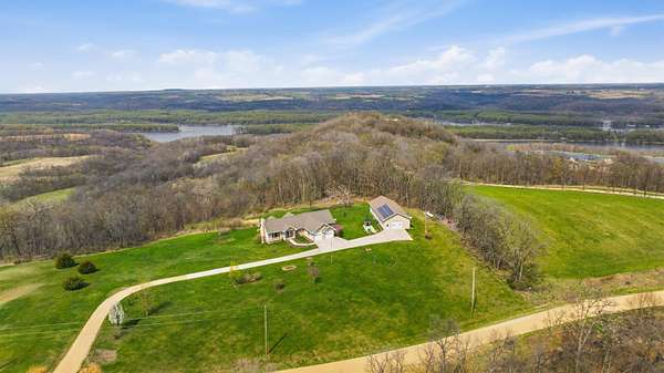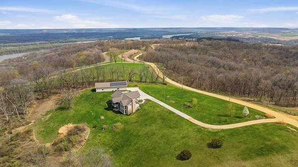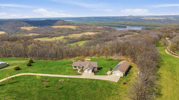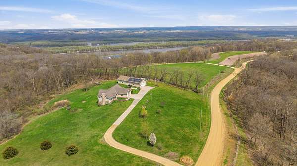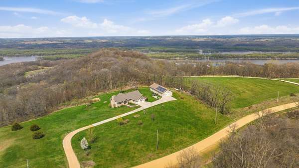 Escape to Your Private Sanctuary Stunning Ranch-Style Home on 3.71 Breathtaking Acres with Beautiful Mississippi River Views Your Breathtaking Setting Awaits This is more than a home; it's a lifestyle defined by privacy, views, and quality. From the cozy wood-burning fireplace to the advanced Sonos sound system and 16-camera security, every detail has been considered. Welcome to a rare opportunity where unparalleled natural beauty meets exceptional modern living in this 2012 custom home. Perched on a private, sprawling lot, this 3-bedroom, 5-bathroom ranch offers a front-row seat to serene, ever-changing Mississippi River vistas and valleys -a view you'll never tire of. Live in Light & Space Step inside to a light-filled interior designed for awe. Soaring 10-foot cathedral ceilings floor-to-ceiling windows and gleaming hardwood floors create an open, inviting atmosphere. The heart of the home is a open kitchen, featuring granite countertops, custom oak cabinetry, and premium appliances including a 36" dual-fuel range. It's the perfect place to create a meal while gazing at your view. A Lower-Level Entertainer's Paradise Descend to a fully finished lower level that redefines luxury living. Revel in the warmth of 3/4" cherry wood walls and a magnificent wet bar equipped with 10 taps. Unwind in the new hot tub or soothe in the infrared sauna -all within a space crafted for festive gatherings and intimate relaxation. Modern Self-Sufficiency & Efficiency Embrace sustainable, worry-free living with a state-of-the-art solar system installed in 2024, complete with battery backup. Enjoy pristine water from three whole-house filtration systems plus reverse osmosis. The attached 2-car garage even includes an EV charger for the modern homeowner. The Ultimate Workshop & Storage For the hobbyist, craftsman, or visionary, the phenomenal 30' x 80' heated shop awaits. Fully equipped with 12-foot ceilings, an 80,000 BTU heater, in-floor heat, HVAC, plumbing, internet, and comp