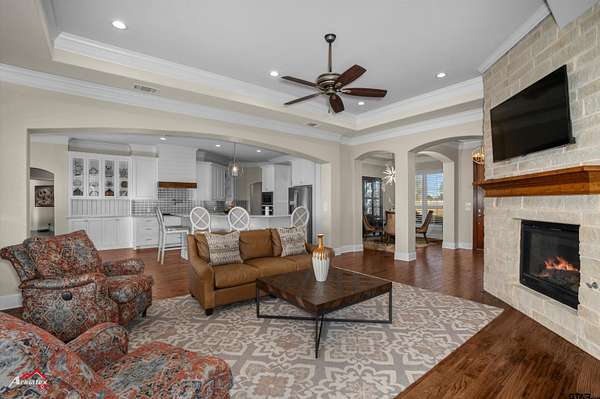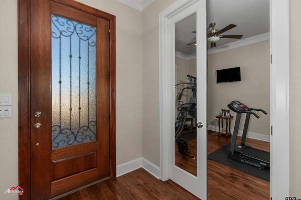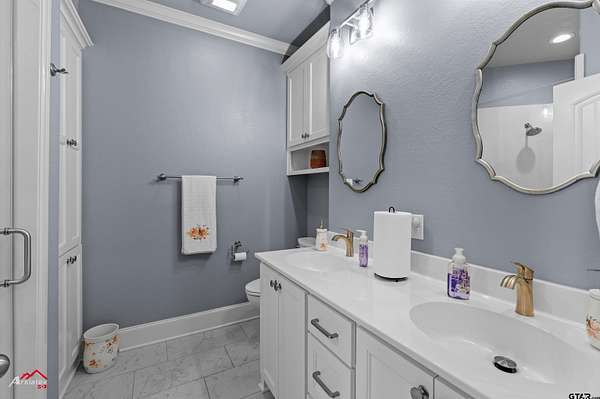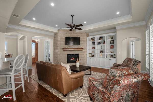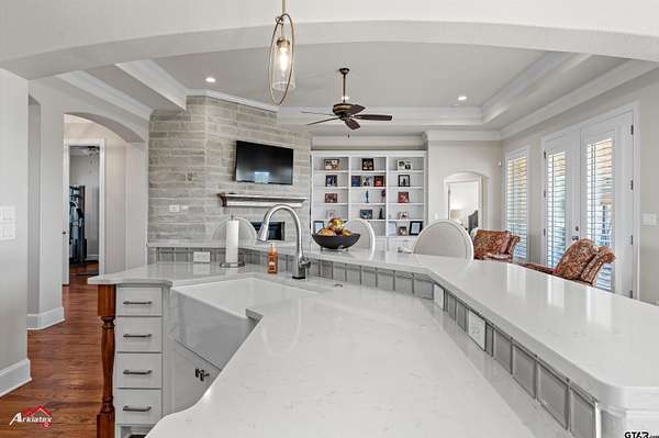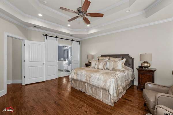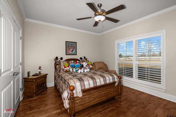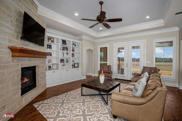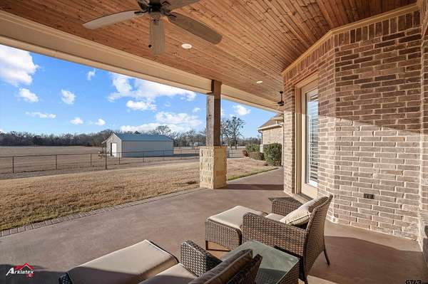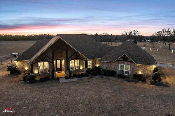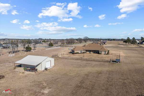 Step into refined luxury and equestrian living at its finest in the exclusive Stallion Lake Ranch community. This custom-built 2018 home is nestled on 10 pristine acres, offering the perfect blend of elegance, privacy, and tranquility for those seeking a peaceful retreat from city life. With over 3,500 square feet of meticulously designed living space, every detail of this residence was crafted to combine timeless style with modern comforts. The home's versatile layout includes a private study ideal for remote work or quiet reading, while a dedicated media room sets the stage for cinematic entertainment and game-day gatherings. An expansive game room with a built-in wet bar provides a vibrant space for hosting and unwinding with family and friends. The luxurious primary suite serves as a serene escape, complete with a spa-inspired en-suite bath featuring a freestanding soaking tub, dual vanities, and a spacious dual-entry shower. The split floor plan ensures two additional bedrooms are privately situated for maximum comfort and quiet. Beyond the interiors, the property's location is unmatched. Just minutes from I-20, it offers convenient access to nearby Lindale--a charming town known for its boutique shopping, renowned dining, and top-rated schools. For a taste of city life, downtown Dallas is only 70 miles away, placing world-class amenities within easy reach while maintaining the serenity of the countryside. Whether you're a devoted equestrian searching for the perfect setting for your horses or a discerning buyer seeking an upscale estate with premier community amenities, this exceptional property offers an unparalleled lifestyle opportunity.