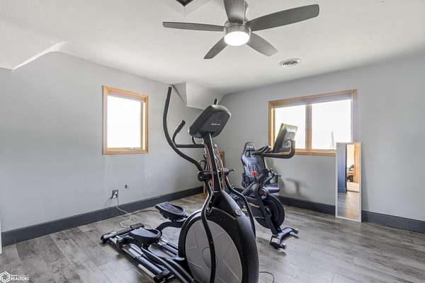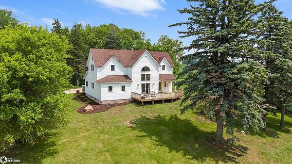 UPDATED ACREAGE ON HARD SURFACE ROAD - A PRIVATE IOWA RETREAT! Dreaming of space to breathe, a slower pace, and the kind of privacy that's hard to find? Tucked down a long private driveway and surrounded by a peaceful grove of trees, this updated acreage is the escape you've been waiting for-offering true tranquility just minutes from town. Step onto the front deck and take in the wide-open countryside views. Inside, this charming Iowa farmhouse blends rustic character with thoughtful updates throughout. The home features four bedrooms, including one on the main level with direct deck access-perfect for flexible living or guest space. The great room is a showstopper, with soaring ceilings, an upstairs catwalk, and large windows that flood the space with natural light. The primary suite includes vaulted ceilings, beautiful views, a jetted tub, and a separate shower. The current owners were drawn to the unmatched sense of privacy here. Far enough from town to feel secluded, yet close enough for everyday convenience. At night, the stars shine bright-free from light pollution, you can see the Milky Way, satellites, and even the space station. Is this the kind of place where you could raise a family, plant a garden, or simply slow down and enjoy the quiet? This acreage offers the space, freedom, and peaceful setting to make it your own. Call us to schedule your private showing today!
