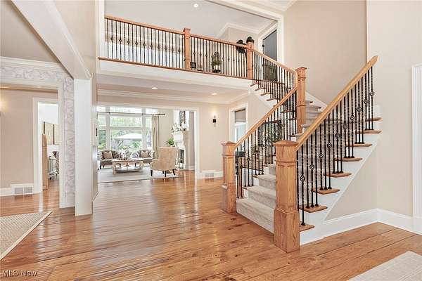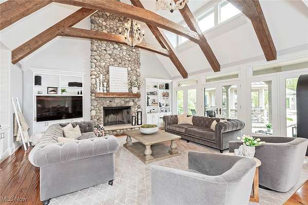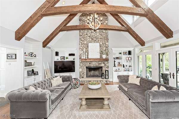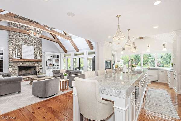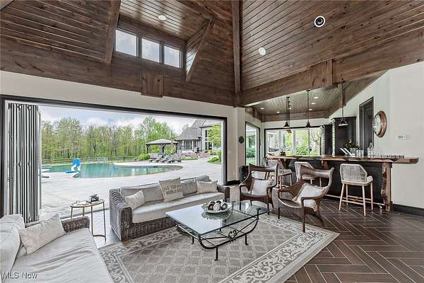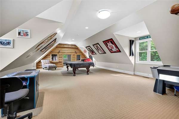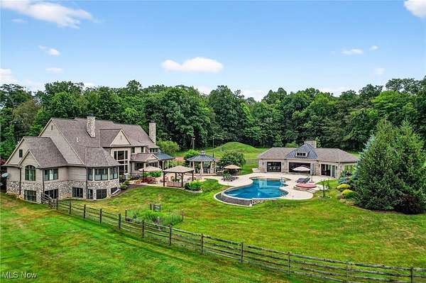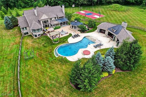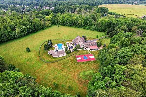 EXTRAORDINARY AND EXQUISITE CUSTOM BUILT HOME AND PROPERTY LIKE NO OTHER YOU WILL FIND! PRIVATE 15 ACRE ESTATE WITH POOL, POOL HOUSE, BASKETBALL/TENNIS (PICKLEBALL) FULLY LIT COURTS, 4+CAR GARAGE. OPEN LAYOUT WITH GRAND SIZE ROOMS, HARDWOOD FLOORING, DESIGNER LIGHTING, UPDATED GOURMET KITCHEN WITH AMAZING CENTER ISLAND AND WINDOWS THAT OPEN OUT OVERLOOKING THE BEAUTIFUL PATIO AND POOL. VAULTED AND BEAMED GREAT ROOM W STONE FIREPLACE ALSO OVERLOOKING AND OPENS TO THE PRIVATE BACKYARD. FIRST FLOOR PRIVATE OFFICE OFF THE ENTRY ACROSS FROM THE SPACIOUS FORMAL DINING ROOM AND OPENS TO A QUIET 2 STORY GRACIOUS LIVING ROOM. FIRST FLOOR SPACIOUS PRIMARY SUITE FEATURING A OVERSIZED WALK-IN CLOSET LIKE NO OTHER AND GLAMOUR BATH WITH LARGE WALK-IN SHOWER, DOUBLE VANITIES AND EXTRA MAKE UP VANITY. 2ND FLOOR INCLUDES 4 SPACIOUS BEDROOMS ALL WITH ON-SUITE BATHS AND LARGE CLOSETS AND AN OVERSIZED BONUS ROOM/GAME ROOM FOR FAMILY OR GUESTS. LOWER LEVEL FINISHED EXTRA GUEST SUITE, FULL BATH WITH WALK-IN SHOWER, MEDIA ROOM AND LARGE WORKOUT GYM PLUS PLENTY OF STORAGE. OUTDOOR FEATURES OVERSIZED HEATED POOL AND UNBELIEVABLE POOL HOUSE PERFECT FOR ENTERTAINING WITH SLIDING DOORS, KITCHEN AND BAR WITH BEAUTIFUL WOOD BARTOP, FULL BATH AND STORAGE LOCKERS. OUTDOOR LIGHTED BASKETBALL COURT, TENNIS COURT AND PRIVATE 15 ACRES. LUXURY LIVING AT IT'S FINEST WITHIN MINUTES OF DOWNTOWN CHAGRIN FALLS.