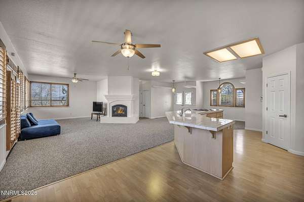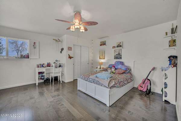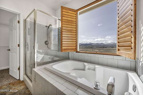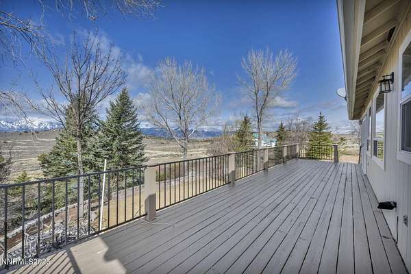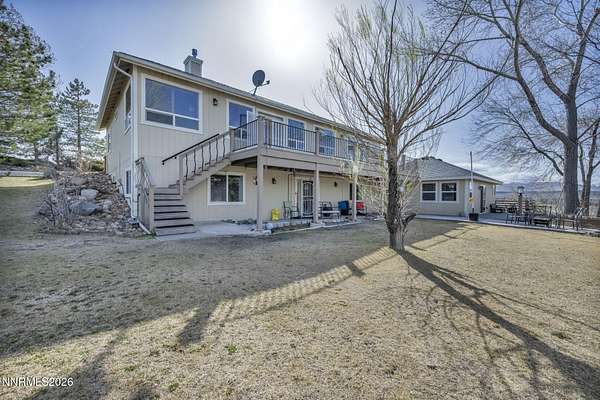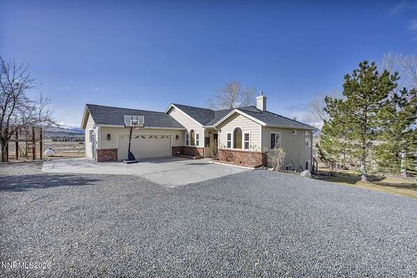 A rare opportunity to own nearly 10 acres in the heart of Gardnerville - This private retreat offers 5 bedrooms and 4 full bathrooms, thoughtfully designed for multi-generational living or a large family. Two bedrooms, including a main-level primary suite, provide ideal flexibility for single-level living. Nestled on 9.94 scenic acres with breathtaking Sierra views, mature landscaping, and direct access to endless BLM trails, this private retreat delivers the perfect blend of peaceful country living and everyday convenience - just minutes from town. The open-concept kitchen connects seamlessly to the main living area, where a cozy gas log fireplace and custom wood shutters create a warm and welcoming atmosphere. The fully finished basement adds incredible versatility, complete with a second kitchen, spacious additional living area, updated luxury vinyl plank flooring, newer appliances, and modern lighting - perfect for extended family, guests, or private living quarters. Separate utility rooms on each level add both functionality and convenience. A beautifully designed 690 sq. ft. primary suite addition (completed in 2015) enhances the home with a spa-like en-suite bathroom, expansive walk-in closet, elegant walk-in tile shower, and a solar tube that fills the space with natural light. Step outside to enjoy an entertainer's backyard featuring a spacious Trex deck, lush lawn, and mature trees that frame the stunning mountain views. Ideally located just 10 minutes from shopping, parks, and local amenities, with approximately one hour to Reno and about 35 minutes to Lake Tahoe. Don't miss the chance to experience acreage living without sacrificing location - schedule your private showing today.