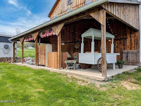 Step back in time while stepping into opportunity! This 6.59-acre property boasts an impressive 80' x 42' two-story barn, originally built in 1848 and still standing strong. With a durable metal roof, timeless character, and extraordinary craftsmanship, the barn offers room to grow and endless potential for creative use. Adding to its footprint are a 40' x 18' addition and a 40' x 16' covered side porch, making it adaptable for a variety of needs. The property also includes multiple outbuildings, offering plenty of space for storage, workshops, or additional development. Currently utilized as a venue, this property has already proven its ability to host special events, but the possibilities are wide open: continue operating as a business, create a dream homestead, or transform it into something uniquely your own. Sale can convey with or without the existing business, depending on buyer's vision. All set on a peaceful 6.59 acres, this rare find blends historic charm with modern potential.