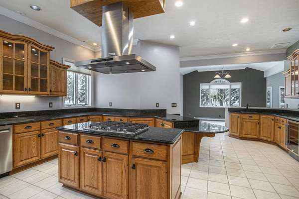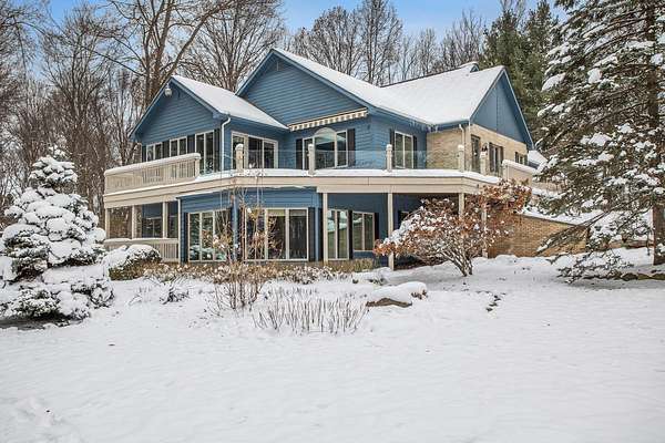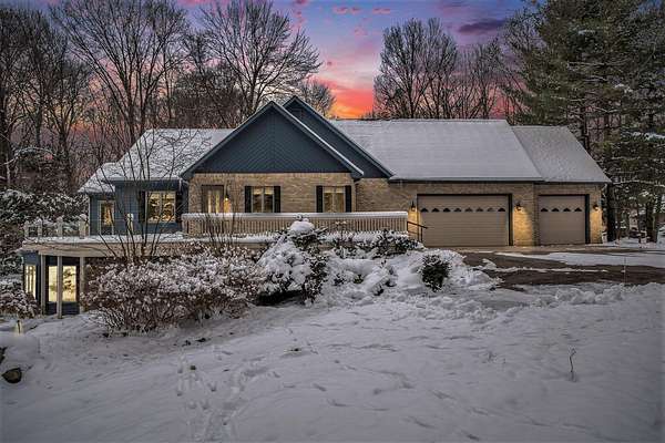 This unique contemporary walkout ranch in Kesselwood Estates sits on almost 2 ''park-like'' wooded acres in a quiet cul-de-sac. You'll be amazed when you see the expansive gourmet kitchen w/granite counters, abundant oak cabinetry, top of the line KitchenAid stainless appliances, wet bar, wine cooler & built-in-desk. There's a formal dining room opening into a cedar trimmed great room w/cathedral ceiling & a cozy fieldstone gas log fireplace. The spacious primary ensuite features a custom designed shower, an electronic skylight & walk-in closet w/custom organizers & laundry, while the second bedroom features a Murphy bed for guests & built-ins for use as an office. There's also a guest bathroom w/hand painted wall coverings. This level has a 3-car attached garage. The lower walkout level is a perfect multi-generational area featuring a full kitchen, living room w/walls of windows, bath, 2 bedrooms & a cedar sunroom. Attached is a laundry & a 2-car heated garage. That makes a total of 5 garage spaces! Amenities include: Central air, Hunter Douglas, Bali & wood blinds, 6" crown moldings, wind sensor awning, wrap around deck, irrigation system, generator, (2) laundry areas & almost 4500 sq. ft. of living area. This exceptional property blends luxury comfort, craftsmanship & natural beauty for the ultimate retreat. Asking $625,000.