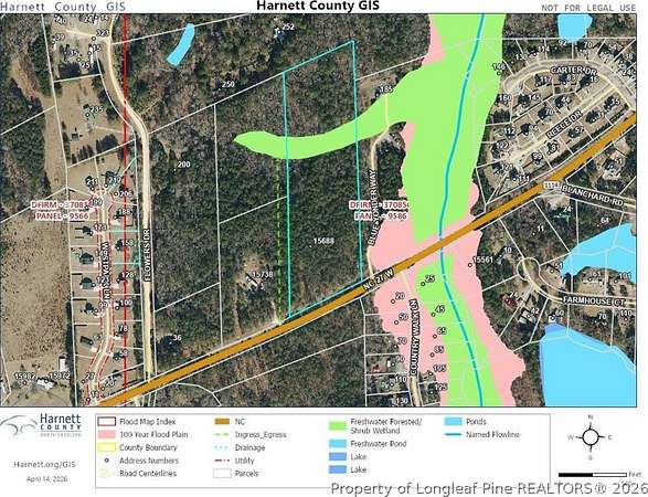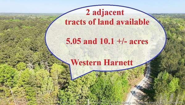 Discover the possibilities with this beautiful 10.1+/- acre tract in Western Harnett County, NC, offering approximately 400 feet of road frontage and a serene, wooded setting. This property presents excellent potential for subdivision or the perfect private homesite. Septic will be needed for wastewater, and county water is required for service (Harnett County GIS indicates water availability along Hwy 27). An additional 5.05-acre parcel is also available and can be purchased together, expanding your opportunity even further. While the adjoining acreage does not have direct road frontage, it benefits from a 50-foot-wide easement providing access to Hwy 27 and is currently listed on the MLS for $90,000. Toward the rear of the property, you'll find a natural feature with a small stream or creek and some wetlands, adding character and appeal to the landscape. Whether you're looking to invest, develop, or build your dream home, this property offers flexibility and natural beauty in a convenient location.