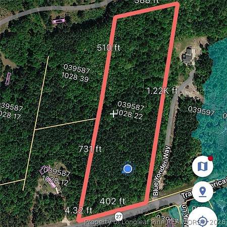 Hwy 27 toward Western Harnett. Pass by Hoover Rd and this acreage will be on the left. #15688 is addressed to the 10 acres. Neighboring parcel address (for GPS) is 185 Blue Yonder Way, Sanford, NC.