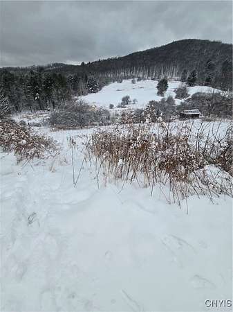 This building lot and recreational land consists of 6.4 acres located in Bolivar NY, Allegany County. The property is slightly sloped from the road and is a gradual slope till it reaches a valley and then slightly ascends from the valley. A stream flows through the property, and the land is mostly brush with some open land. There is electric located at the road, and the hill could provide for an excellent building spot with views. This property is an Estate. Everything on the property will convey. Boundary lines on the aerial maps are approximate. Sub surface rights are leased but surface rights will convey with the property. There is no survey but this can be negotiated. The property is located 26 minutes from Olean NY, an hour and 45 minutes from Buffalo NY, and 17 minutes from Cuba NY.