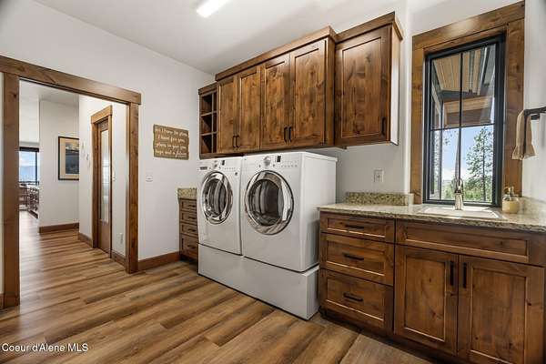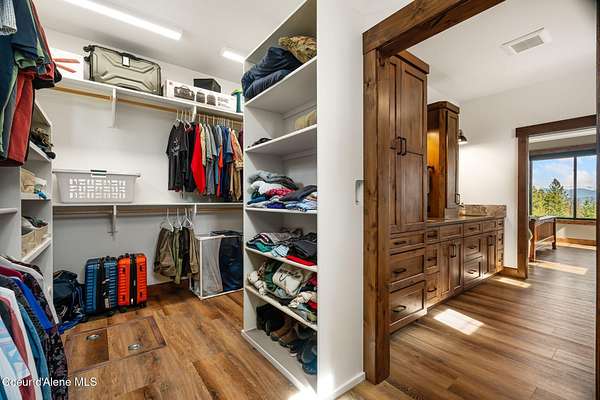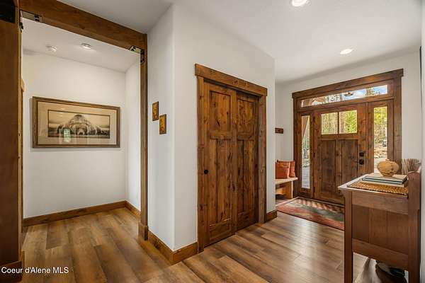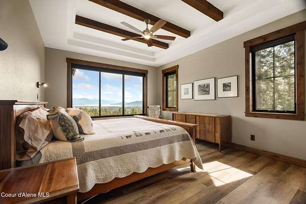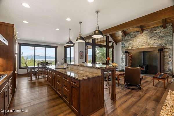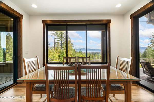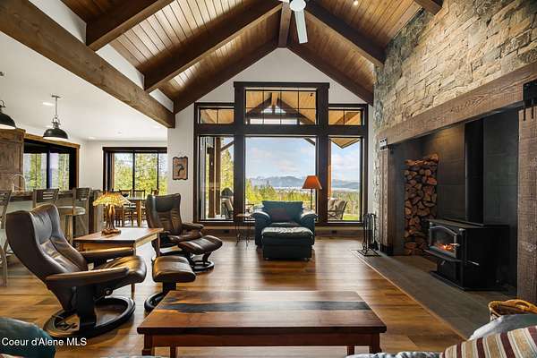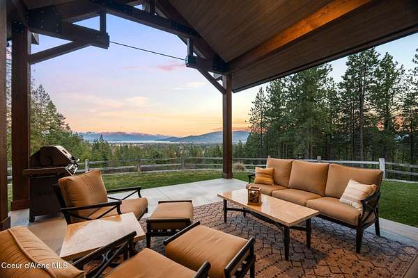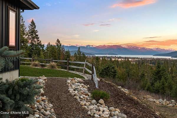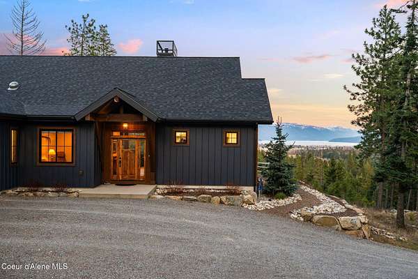 A rare opportunity to own nearly 7 acres of complete privacy just minutes from town--where panoramic views of Lake Pend Oreille and the Cabinet Mountains take center stage. Perched on a quiet, county-maintained road only 1.5 miles from Sandpoint city limits, this exceptional North Idaho retreat offers a setting that feels worlds away without sacrificing convenience. Built in 2021, the thoughtfully designed single-level home features 2,447 sq ft, 3 bedrooms, 2.5 baths, and an open-concept layout highlighted by timber-frame accents, a cathedral ceiling, and a wood stove set within a striking natural-rock inglenook surround. The kitchen is equally impressive with a 10' island, Thermador appliances, and custom cabinetry, designed for both everyday living and entertaining. Outdoor living is just as intentional, with a covered timberframe deck and screened porch perfectly positioned to take in the views and surrounding landscape. The property also features mature landscaping, a fenced garden with raised beds and fruit trees, irrigation, and open pasture areas--offering space and flexibility without sacrificing comfort or ease. A standout feature is the 30' x 40' fully finished shop with loft, offering RV access, full bath with laundry, kitchenette, and extensive workspace--ideal for hobbies, storage, or additional flexibility. Suburban zoning adds to the appeal, allowing for the potential to build a second residence on the property if desired. Located just minutes from downtown Sandpoint and in close proximity to Schweitzer Mountain Resort, Pine Street Woods, Mickinnick Trail, and endless year-round recreation, this property delivers the ultimate North Idaho lifestyle--privacy, views, and access to it all.