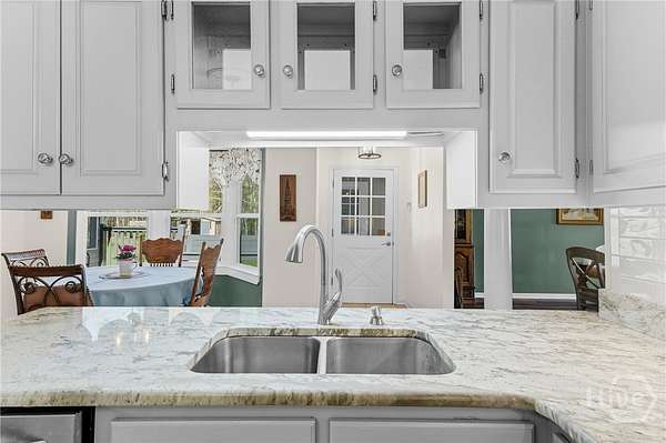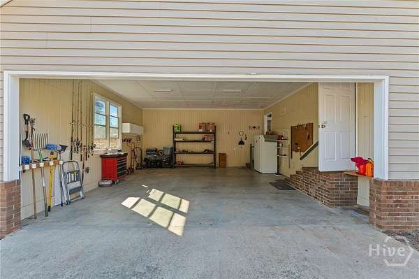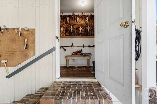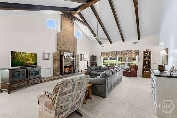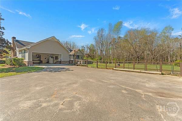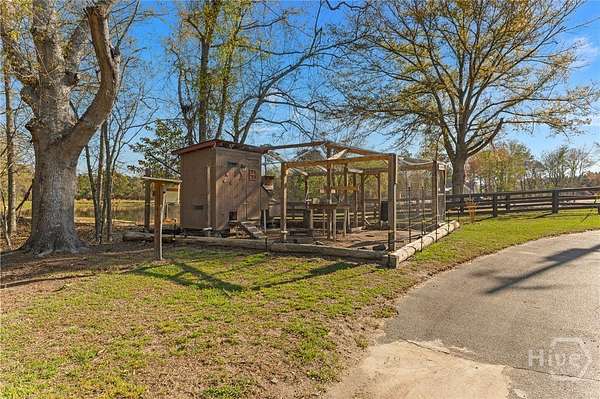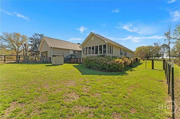This is the dream farmhouse you've been waiting for. Situated on just under 6 acres, this property features mature trees, fruit trees, blueberry bushes, a stunning live oak, and a stocked pond with a private dock. This 4 bedroom, 2.5 bathroom home offers just under 2,900 sq ft and has been beautifully renovated with new windows, flooring, bathrooms, granite countertops, and fresh paint. Inside, enjoy a spacious living room with vaulted ceilings, wood beam accents, and a brick gas fireplace that flows into the formal dining room. The kitchen is tucked away for a more private layout and features new appliances, granite countertops, an island, and a large pantry. A breakfast room overlooks the backyard, while the screened-in porch with outdoor kitchen is perfect for entertaining. The fenced yard and multiple outbuildings make this property ideal for pets, hobbies, or a small farm.