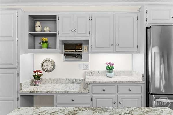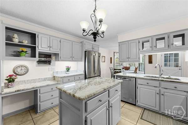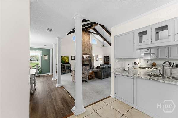 - Breakfast Area, Built-In Features, Ceiling Fan(s), Double Vanity, Fireplace, Intercom, Kitchen Island, Main Level Primary, Pantry, Pull Down Attic Stairs, Separate Shower, Vaulted Ceiling(s)