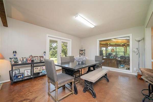 A RARE FIND! THIS UNIQUE BEAUTY SITS ON 24.56 ACRES with picturesque views in every window of this sprawling home with lots of mature trees scattered throughout. The home boasts an open floorplan downstairs with open kitchen, den and dining. The master bedroom downstairs has a brick corner fireplace plus an office and work-out room. An extra bath downstairs that offers convenience. Great oversized laundry room. A stunning staircase leads to 2 more bedrooms and 1 bathroom. Large covered patio to enjoy the breathtaking views! There is a 30 x 50 workshop with office, plus awning cover and other livestock pens, etc and 2 ponds on this gorgeous property! The possibilities are endless on this 24+ acres property with so much to offer!