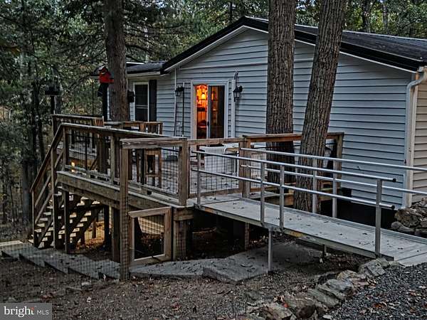 Mountain Gem is Ready to enjoy Now! All the work has been done for you on this Cacapon River Access Cabin. Lovingly renovated in 2023 with a Spacious design including, 2 Bedrooms, 1 Bath, Great Room , Laundry. The interior has cathedral ceilings and hardwood flooring, custom built cabinetry. Below you'll find a very a workshop and garage as well as storage area. The rear deck overlooks a beautiful lay of land of mixed hardwoods and pines, with a entertainment area and is already fenced for your puppies or little ones. The exterior is new vinyl siding with metal roofing for years of maintenance free enjoyment. As an added bonus a new 20x20 detached garage with 8 ft roll up door and electric. This is one cabin that you'll find no disappointments, so book your showing today.