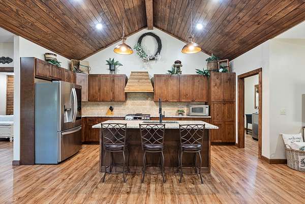 Inside the main home, you'll find 3 bedrooms all on the main level, plus a spacious bonus room--ideal for work, play, or hosting guests. The heart of the home is warm and welcoming, offering vaulted ceilings with wood accents that echo the natural beauty just outside every window. Two climate-controlled garages offer space for hobbies, vehicles, or storage--whatever fits your lifestyle.