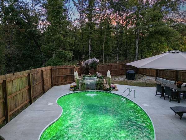 Tucked away on 6.28 wooded acres in beautiful Hohenwald, this cabin-style home offers the perfect blend of rustic charm and modern comfort. Just 2 years old, every detail of this home was designed for peaceful living--whether you're starting your mornings with coffee under the covered back patio, enjoying the wildlife right in your backyard, or ending your day with a swim in the saltwater pool under Tennessee skies. You will feel like you are on a vacation getaway every day. But the true gem? A separate 1,000 sq ft guest house, fully livable and perfect for extended family, guests, or income potential! What other property on the market has an option for an income earning option already built in for you! Looking for a multi-generational property with no stairs? This one is PERFECT!