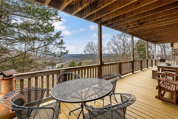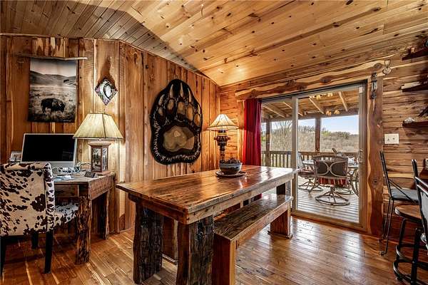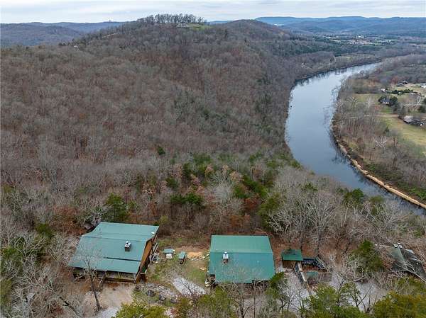 A rare luxury estate offering breathtaking views of Inspiration Point and the White River from a private 3-acre setting just minutes from Eureka Springs. This exceptional property features three distinct dwellings, each crafted with rich wood finishes and designed to embrace the surrounding natural beauty. The elegant two-story main residence includes 3 bedrooms, 2.5 baths, an office, bonus room, and a stunning two-level deck capturing panoramic vistas. A refined single-story 2 bed, 2 bath home with an office provides an ideal retreat for guests or extended family, echoing the same quality craftsmanship. The fully furnished ADU studio elevates the property further as a high-performing short-term rental including some 2026 rentals secured. With unmatched scenery, architectural warmth, and exceptional versatility, this estate is perfectly suited for a luxurious family compound, private mountain sanctuary, or premium investment opportunity.