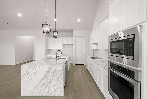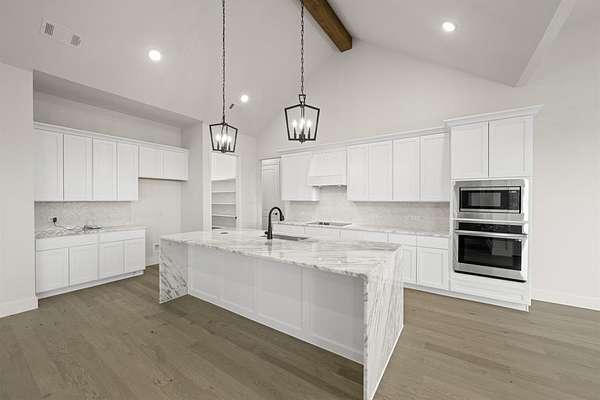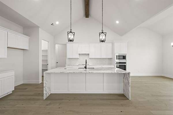 - Cathedral Ceiling(s), Decorative Lighting, Double Vanity, Eat-In Kitchen, Granite Counters, Kitchen Island, Open Floorplan, Pantry, Vaulted Ceiling(s), Walk-In Closet(s)