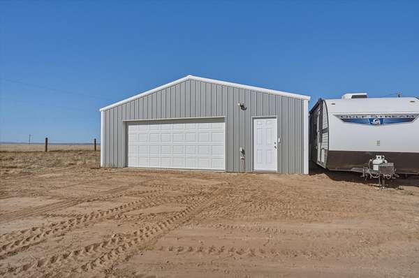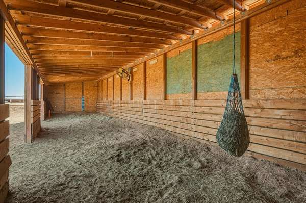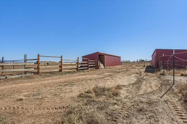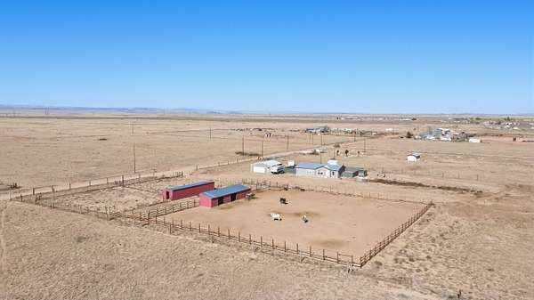 Enjoy peaceful living with modern convenience in this less-than-3-year-old horse property, located under 10 minutes from I-25. Situated on a fully fenced 5-acre lot with a gated entry, this quiet and private retreat offers an open floorplan and a desirable split primary layout, perfect for both everyday living and entertaining. Designed with equestrian and hobby needs in mind, the property features two barns--one with a tack room connecting two shelters, plus a separate hay barn with open stables. Additional improvements include a detached 2-car garage with 220-volt outlets, RV hookup, two storage sheds/workshop spaces, and a dedicated hobby structure with electricity. Surrounded by wide open space, this property offers a rare combination of functionality, versatility,