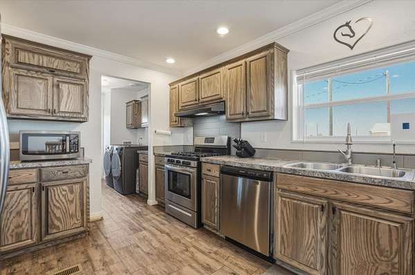- Dishwasher, Disposal, Dryer, Free Standing Gas Range, Microwave, Refrigerator, Washer, Water Softener Owned
