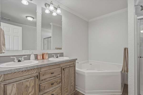 - Bathtub, Breakfast Area, Breakfast Bar, Ceiling Fans, Dual Sinks, Garden Tub Roman Tub, High Speed Internet, Main Level Primary, Separate Shower, Soaking Tub, Walk In Closets