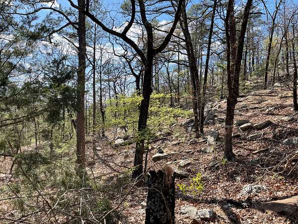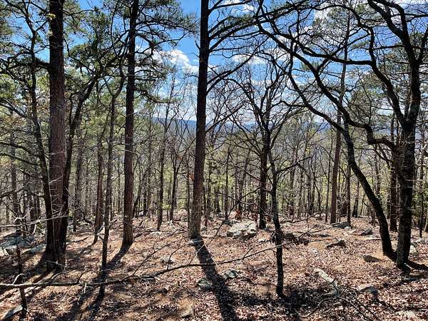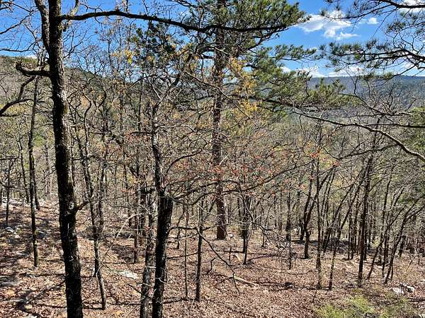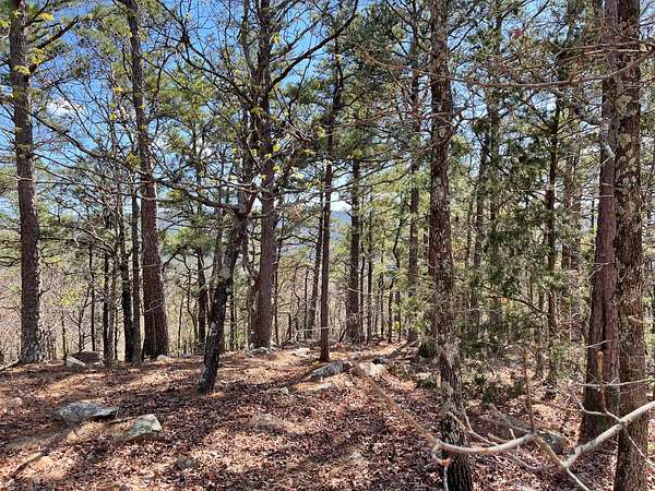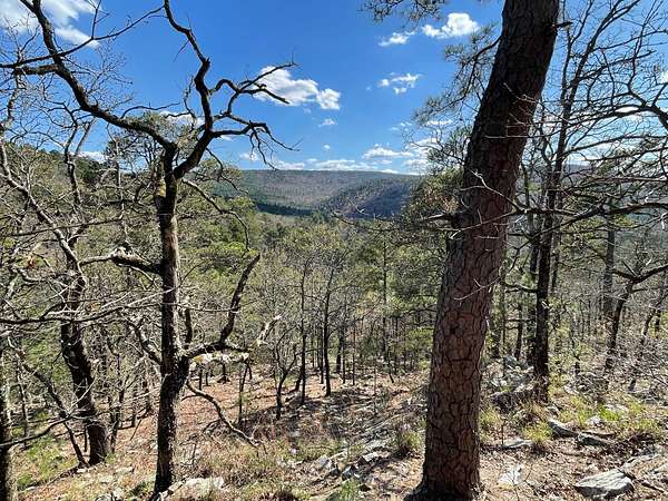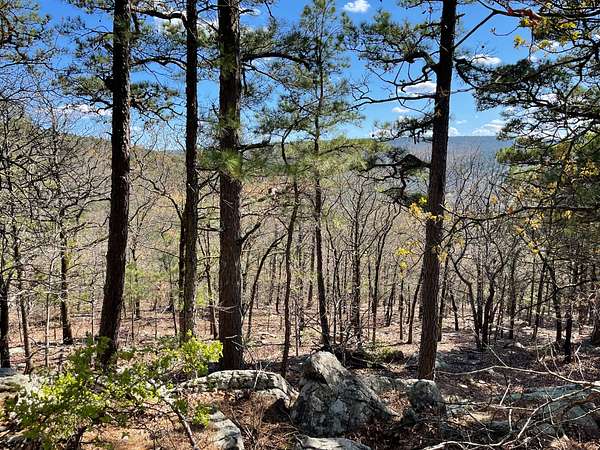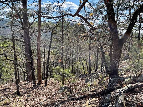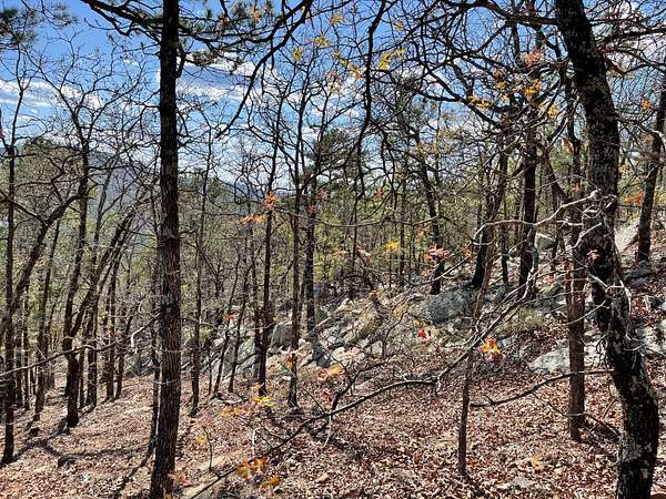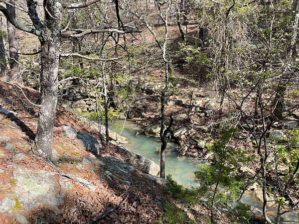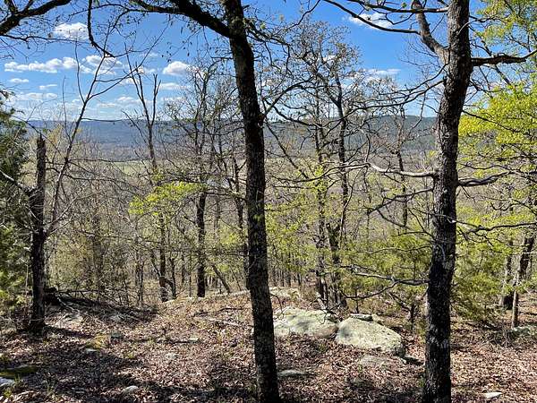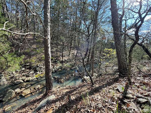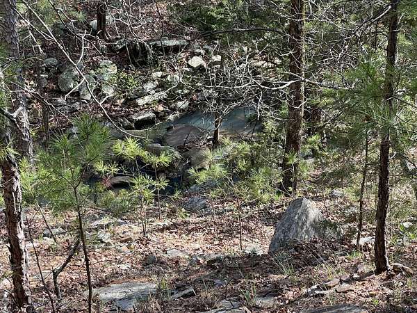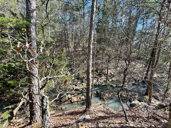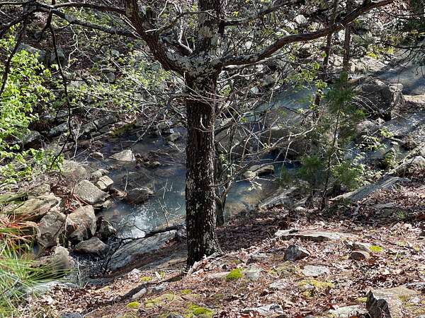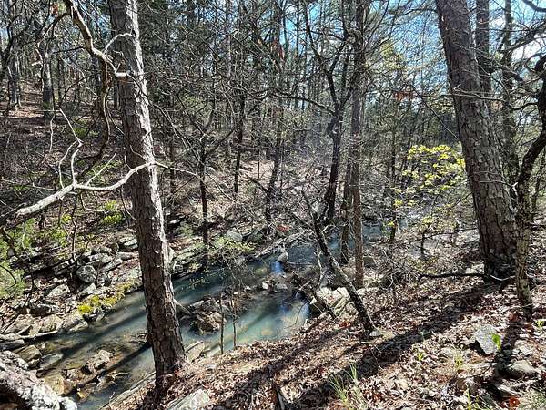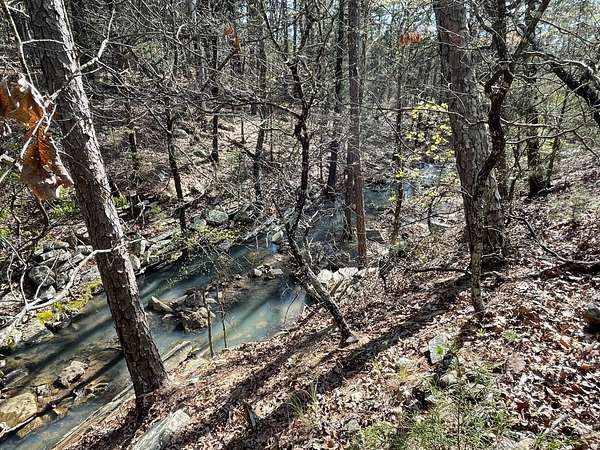 Mountain View Paradise is a 40 acre property with Clear creek running through it. Located at the base of Big Caney Mountain with elevation changes ranging from 740ft to 1020ft. The creek runs clear water with multiple water falls and large rocks. The top of the property is level with a great place to build a home or cabin overlooking the valley on all sides with mountain ranges in the distance. There is no bad view here! From the top the land goes down the mountain to the creek side and then back up again on the other side. This would be a nice piece of land to develop. Currently there is no trail to the property so some bulldozing of a road would be needed. There is electric and rural water at Highway 43 roadside. This property will need to have a legal easement given, so currently it is landlocked but not far from the highway and it is down a section line. The land has beautiful tall trees, oak, pines, cedar and plenty of large boulders. So much to offer and a great price also!