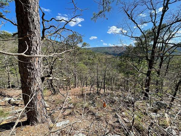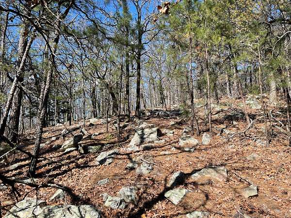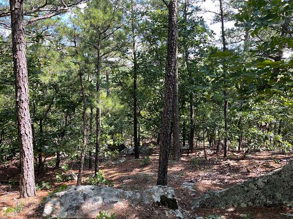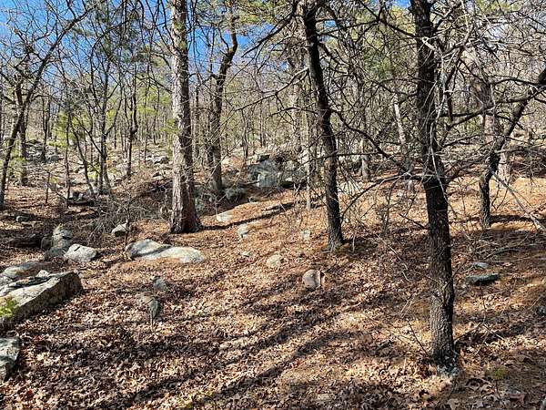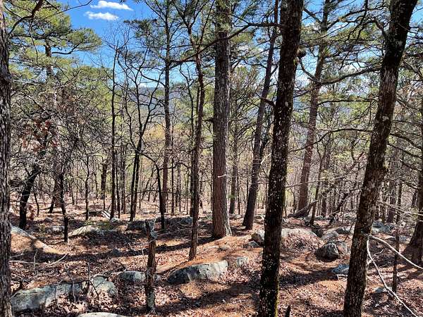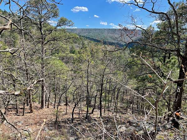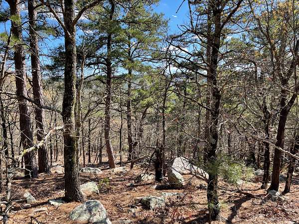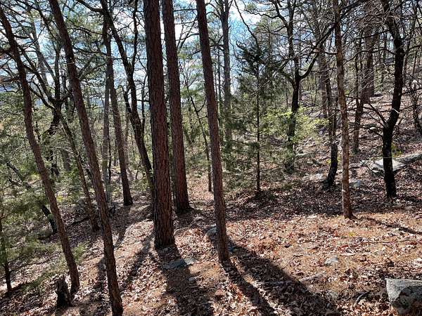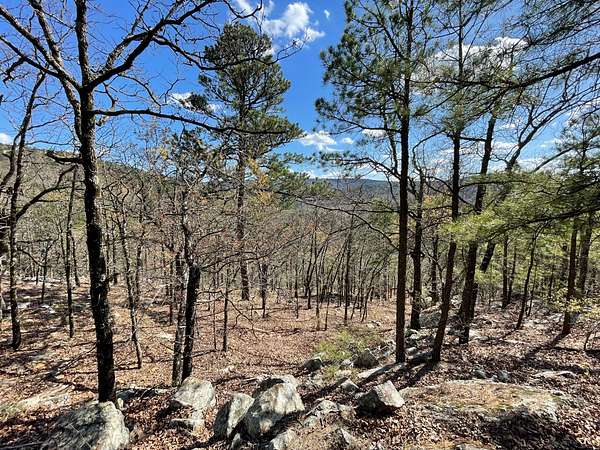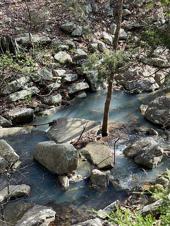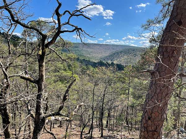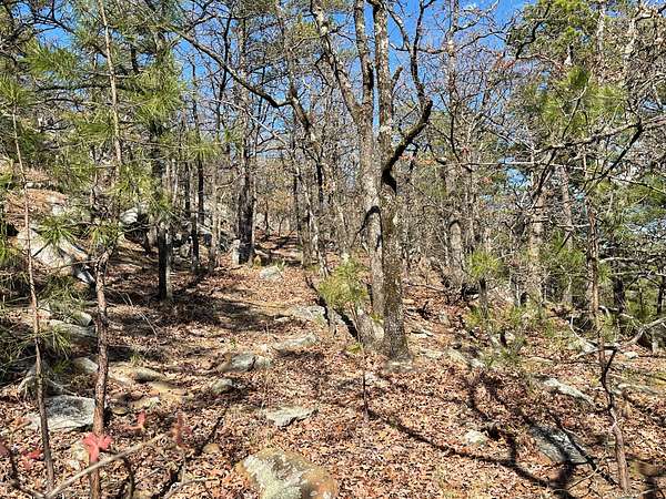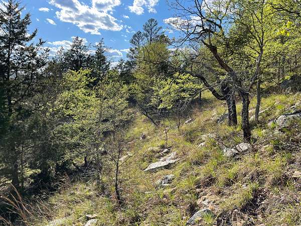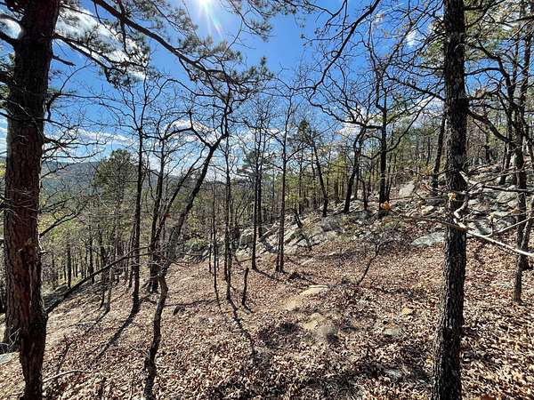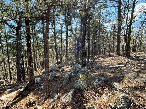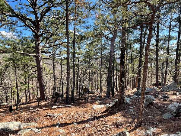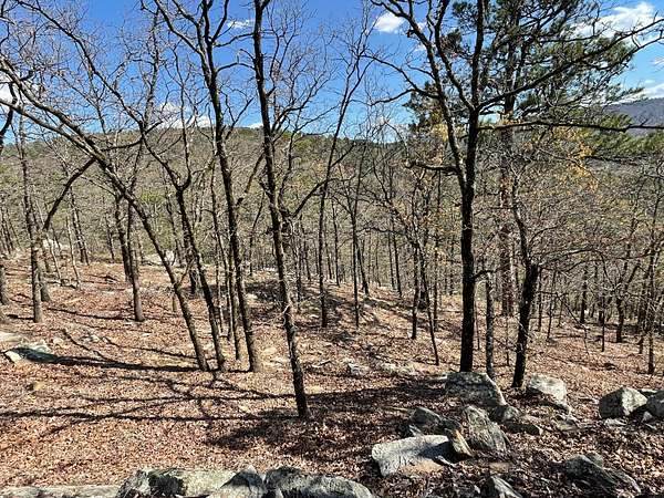 Mountain View Paradise is a 40 acre property with Clear creek running through it. Located at the base of Big Caney Mountain with elevation changes ranging from 740ft to 1020ft. The creek runs clear water with multiple water falls and large rocks. The top of the property is level with a great place to build a home or cabin overlooking the valley on all sides with mountain ranges in the distance. There is no bad view here! From the top the land goes down the mountain to the creek side and then back up again on the other side. This would be a nice piece of land to develop. Currently there is no trail to the property so some bulldozing of a road would be needed. There is electric and rural water at Highway 43 roadside. This property will need to have a legal easement given, so currently it is landlocked but not far from the highway and it is down a section line. The land has beautiful tall trees, oak, pines, cedar and plenty of large boulders. So much to offer and a great price also!