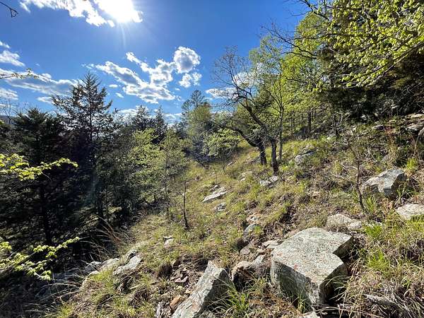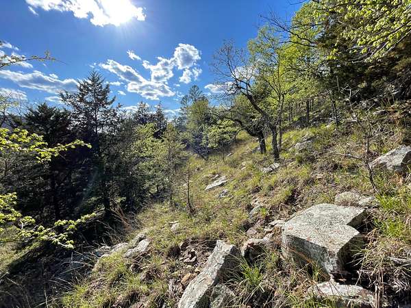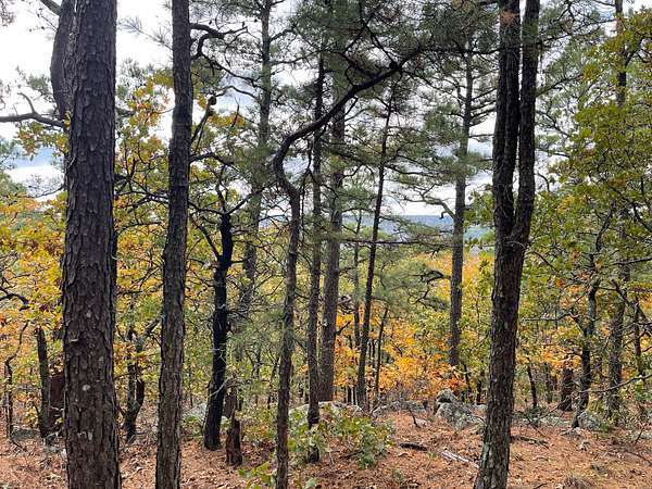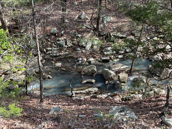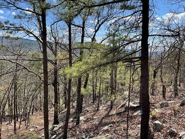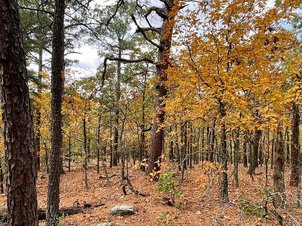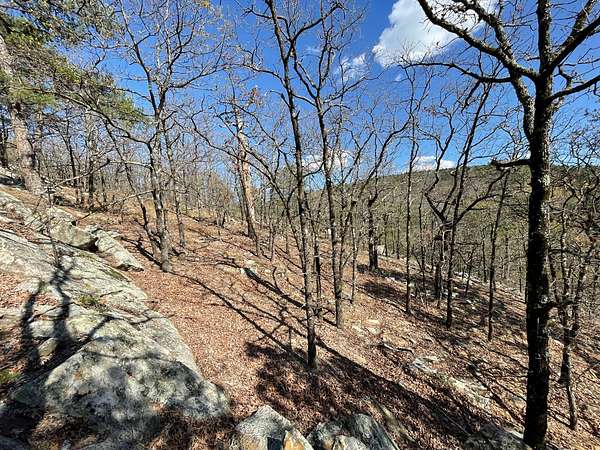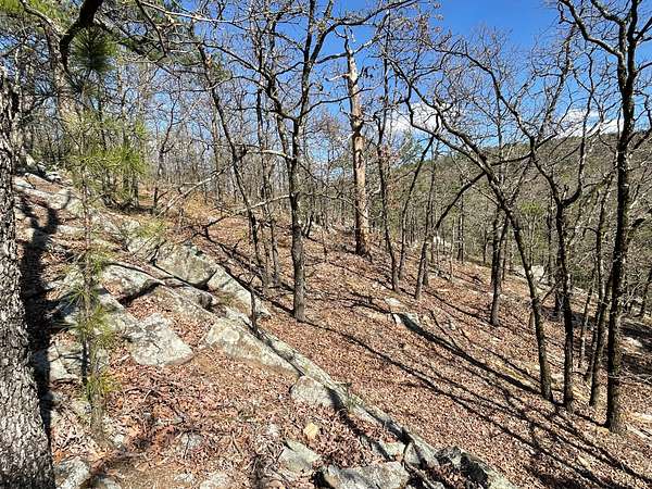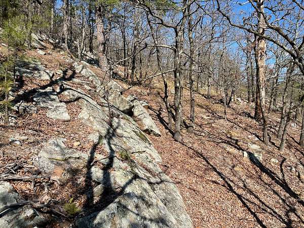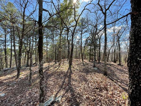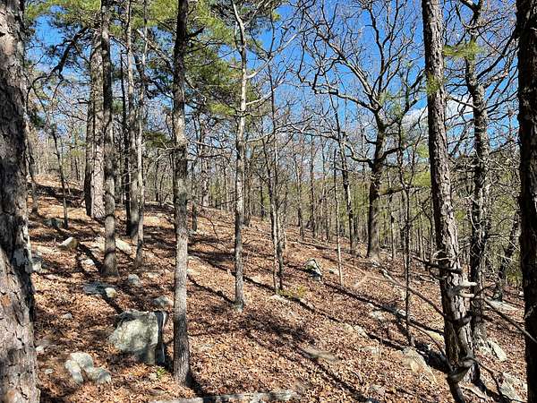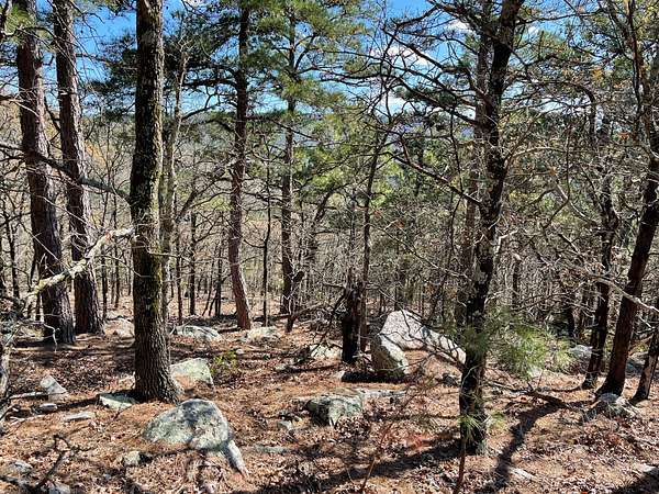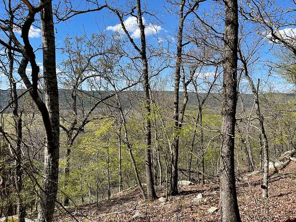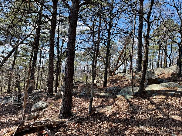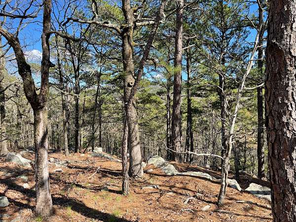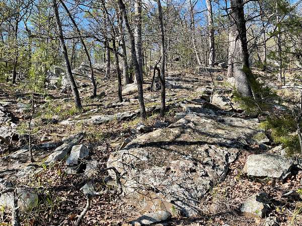 Mountain View Paradise is a 40 acre property with Clear creek running through it. Located at the base of Big Caney Mountain with elevation changes ranging from 740ft to 1020ft. The creek runs clear water with multiple water falls and large rocks. The top of the property is level with a great place to build a home or cabin overlooking the valley on all sides with mountain ranges in the distance. There is no bad view here! From the top the land goes down the mountain to the creek side and then back up again on the other side. This would be a nice piece of land to develop. Currently there is no trail to the property so some bulldozing of a road would be needed. There is electric and rural water at Highway 43 roadside. This property will need to have a legal easement given, so currently it is landlocked but not far from the highway and it is down a section line. The land has beautiful tall trees, oak, pines, cedar and plenty of large boulders. So much to offer and a great price also!