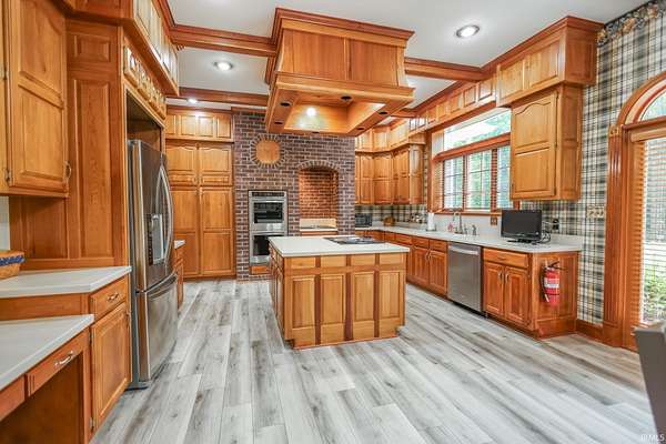 - Bar, Basketball Goal, Built-In Gas Grill, Ceiling Fan(s), Ceiling-9+, Ceilings-Vaulted, Closet(s) Walk-In, Crown Molding, Custom Cabinetry, Detector-Carbon Monoxide, Detector-Smoke, Dishwasher, Dryer Hook Up Electric, Eat-In Kitchen, Formal Dining Room, Foyer Entry, Garage Door Opener, Garage-Heated, Garden Tub, Great Room, Jet Tub, Jet/Garden Tub, Kitchen Island, Landscaped, Main Floor Laundry, Main Level Bedroom Suite, Patio Open, Pool Equipment, Refrigerator, Stand Up Shower, Water Heater Electric, Window Treatment-Blinds