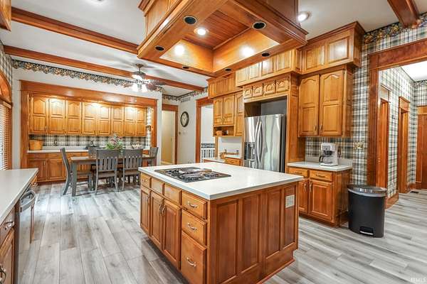 Tucked away on the edge of Lawrence County lies a breathtaking Neo-Classical Southern estate -- a dream home for many, and a grand manor for the few. Set on five manicured acres, the home welcomes you with a stately columned porch, a resort-style pool, and a spacious four-car garage. Outdoor living is complete with pristine landscaping, a back patio, and room to gather. Inside, a sweeping double staircase and chandelier create a dramatic entrance. Formal dining and living rooms set the stage for special occasions, while multiple family rooms and a sunroom offer comfort and space for everyday living. The chef's kitchen provides room for hosting holidays and celebrations, and the primary suite is a true retreat with vaulted ceilings, a fireplace, and a spa-inspired bath. A distinguished office with custom cherry cabinetry opens to a private patio overlooking the grounds. Downstairs, enjoy a stylish bar, game room, and additional full kitchen. Upstairs, six additional bedrooms provide privacy and space for guests. With seven bedrooms and eight baths, this estate blends elegance, comfort, and entertainment -- a sanctuary for gatherings and unforgettable moments.