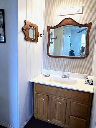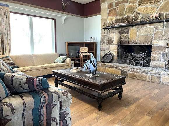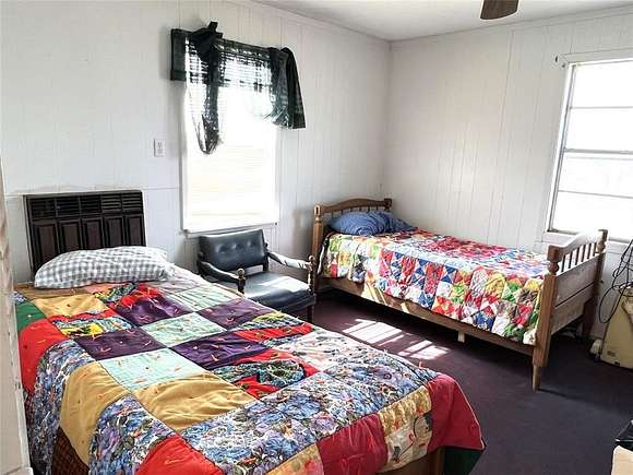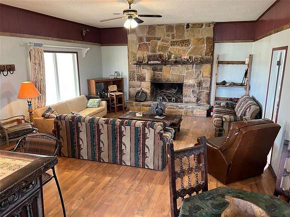 Cabin with contents ready to host your first hunt. 2 fields provide 77 clean acres of previous wheat pasture perfect for 2 food plots located north and south. Cabin features a stone (sourced from property) wood-burning fireplace, open living and kitchen area, large front porch, 2 bedroom, one bath. Kitchen with electric stove. Rolling elevations and draws create the perfect environment for trophy deer, wild turkey, dove, hogs and more. Waterfowl include ducks, geese and sandhill cranes. Winding trails provide easy access across the property to feeders and stock tanks. Coop water.